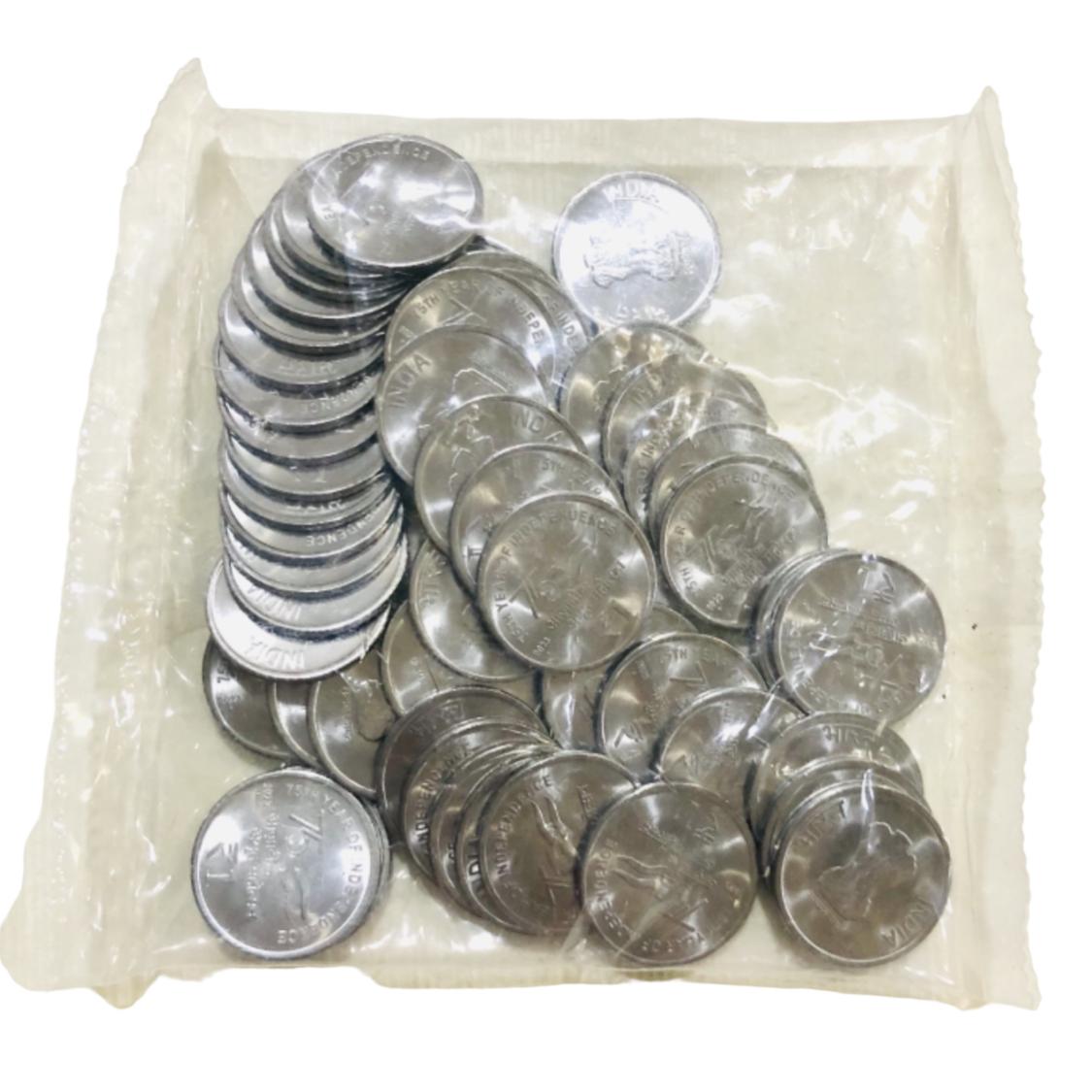 - Rs 1/- Government Of India Issue 75 Year Of Independence RBI 50 Coin Mini Seal Pouch MUMBAI Mint 2023