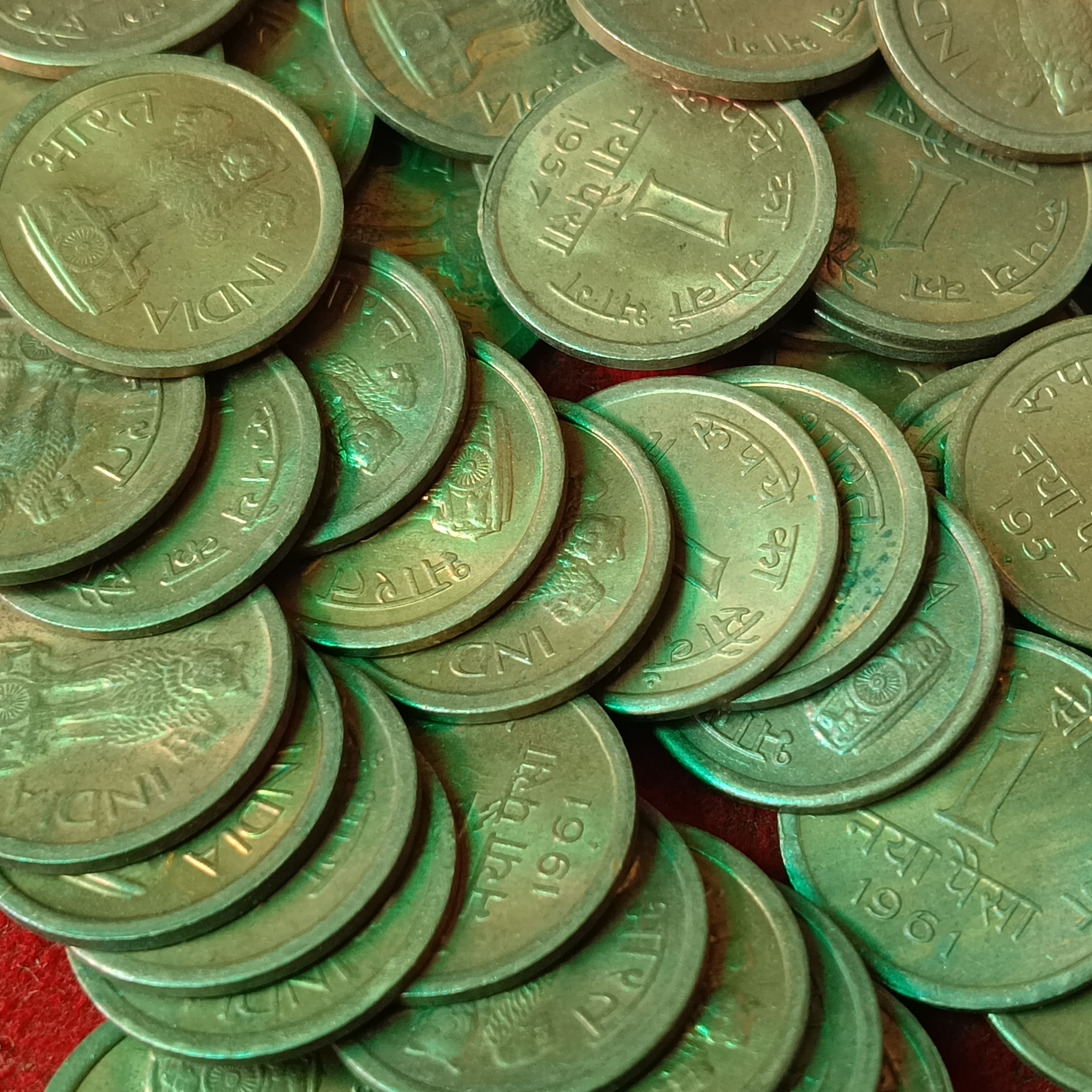 - One Naya Paisa Unc Bronze 50 Pcs Given 1957-61Year All Mints Mix Republic of India