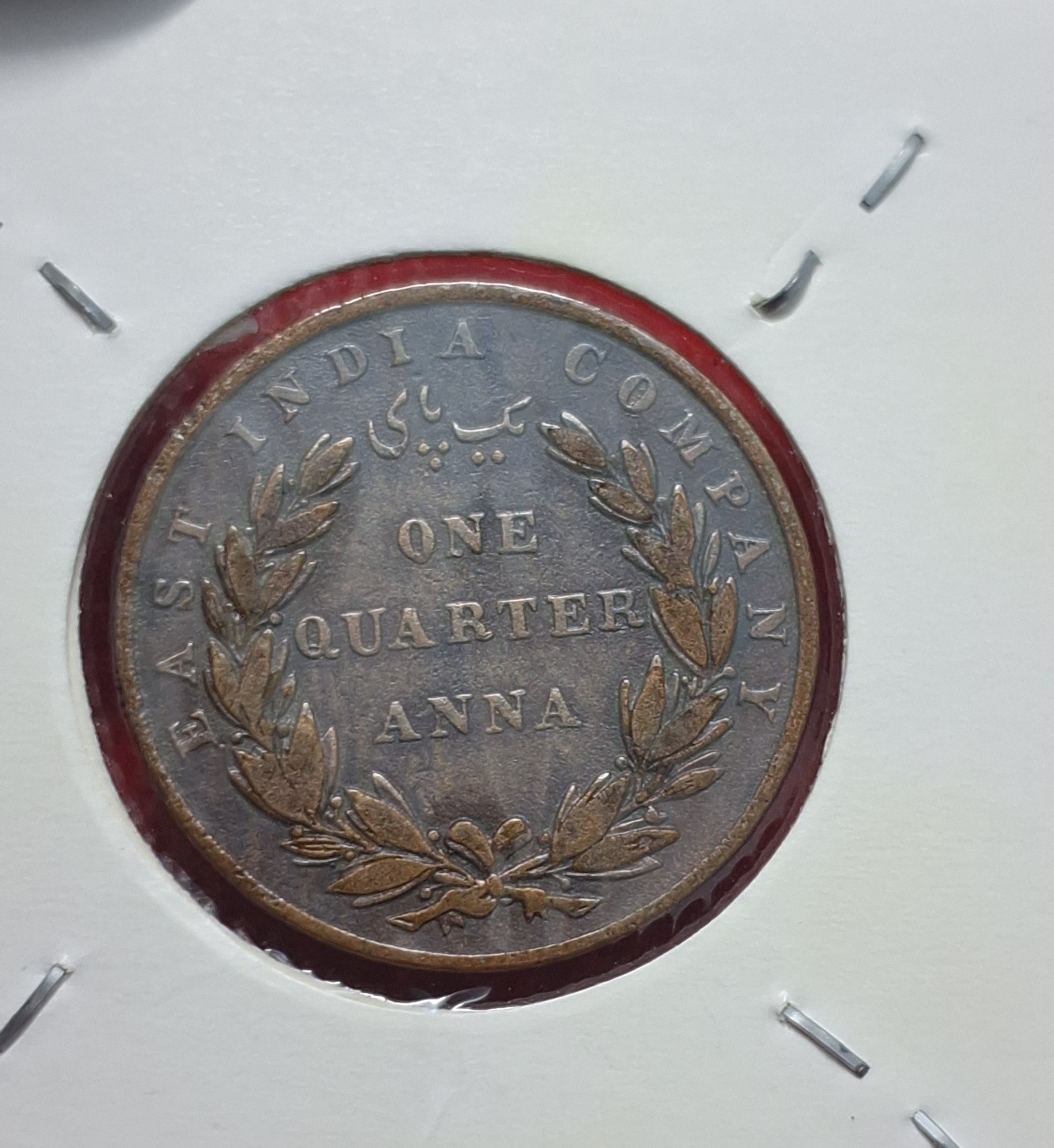 ONE QUARTER ANNA 1835 EAST INDIA COMPANY 02 SMALL QUARTER ANNA