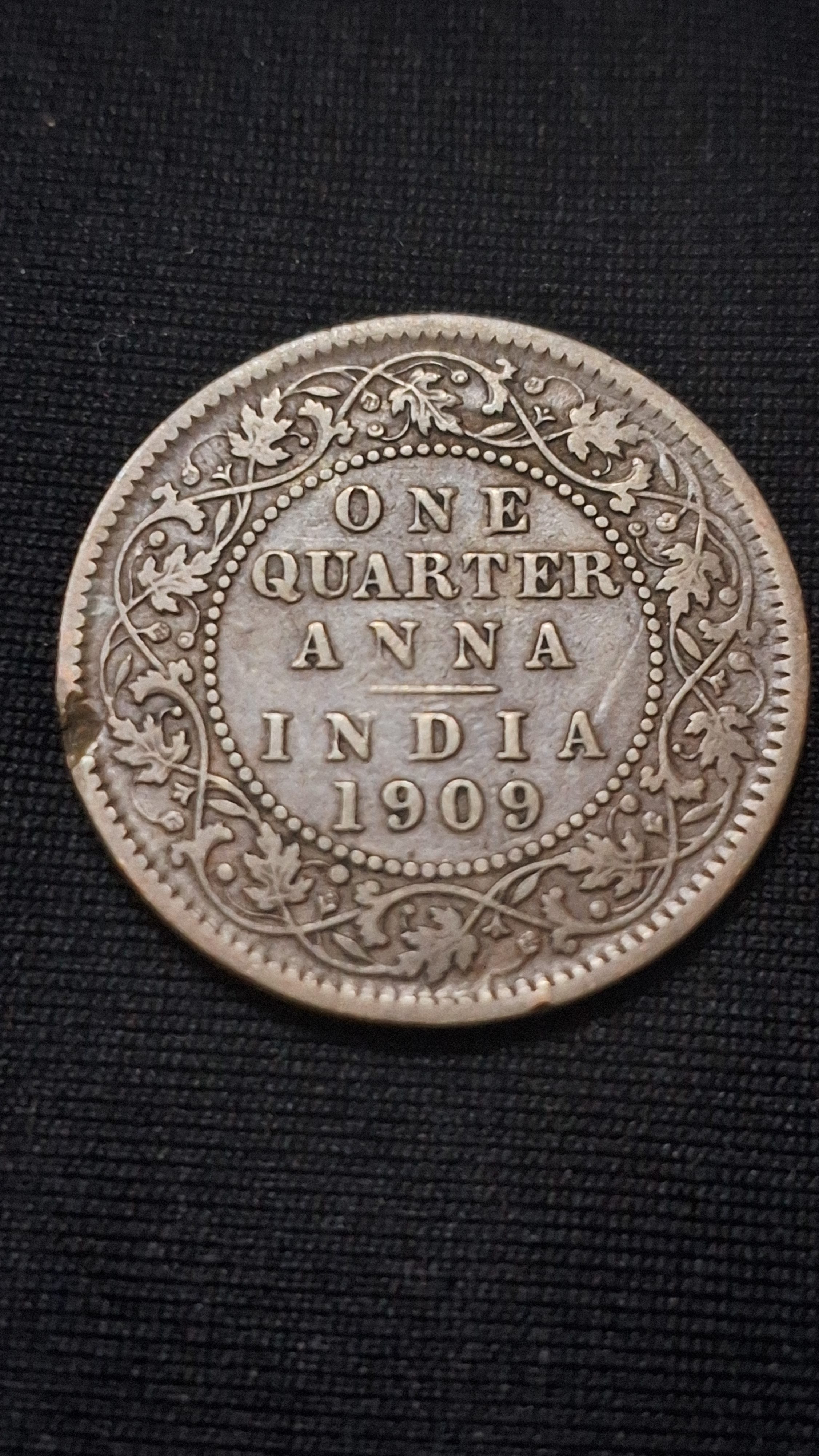 🌟 Vintage ONE QUARTER ANNA 1909 coin
