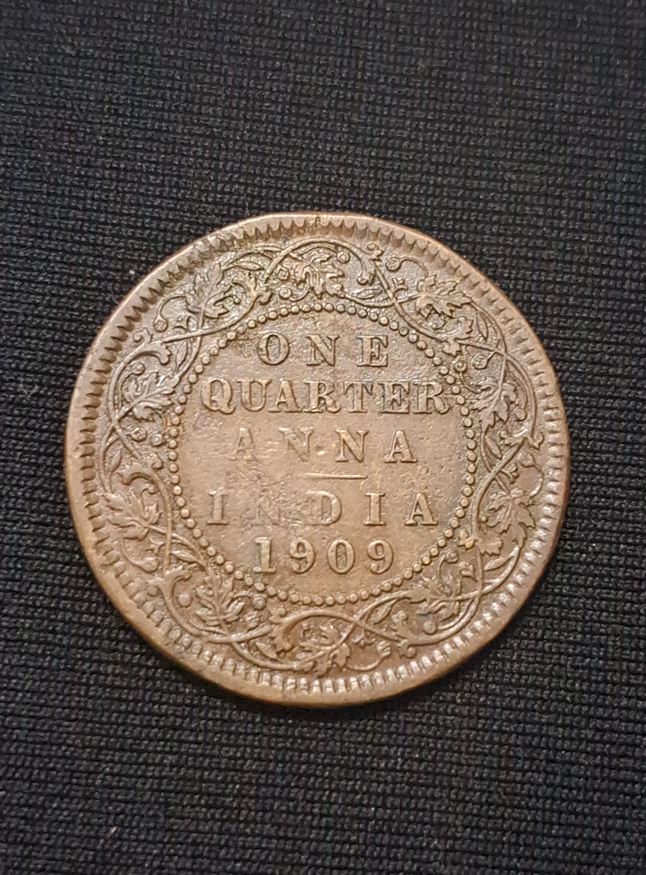 🌟 Rare ONE QUARTER ANNA 1909 coin