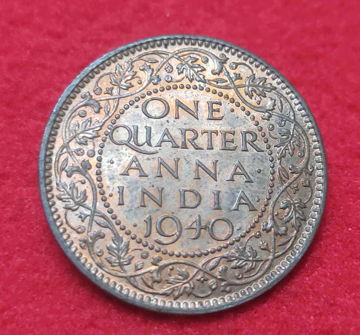 Step back in time with this exquisite ONE QUARTER ANNA coin from the reign of King George V in 1940. Crafted in bronze, this historic piece bears the regal emblem of George V King, symbolizing a bygone era of British colonial rule in India. The coin’s intricate design and fine craftsmanship showcase the artistry of the time, making it a coveted addition to any numismatic collection. With its tangible link to history and significant cultural value, this coin represents a tangible piece of the past that collectors and enthusiasts alike will treasure. Its rarity and historical significance make it a prized possession for those passionate about preserving and appreciating the legacy of numismatics. This piece comes with a rich provenance, adding to its allure and making it a standout piece in any collection.