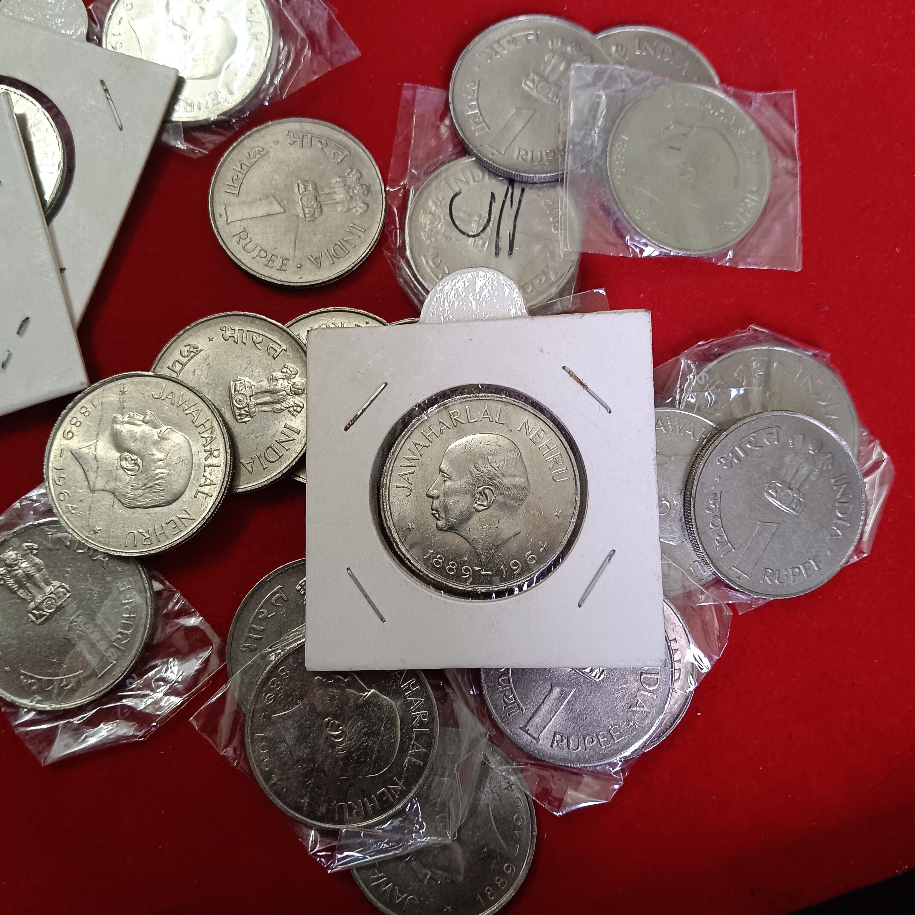 - One Rs Big Coin Copper Nickel Jawaharlal Nehru Gem Unc Coin 10 Pcs Given Calcutta Mint