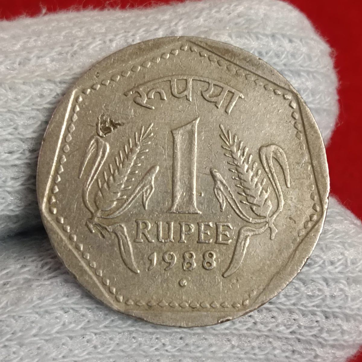 - One Rs Cooper Nickel Rare Coin 1988 Year Noida Mint Extra Fine Condition