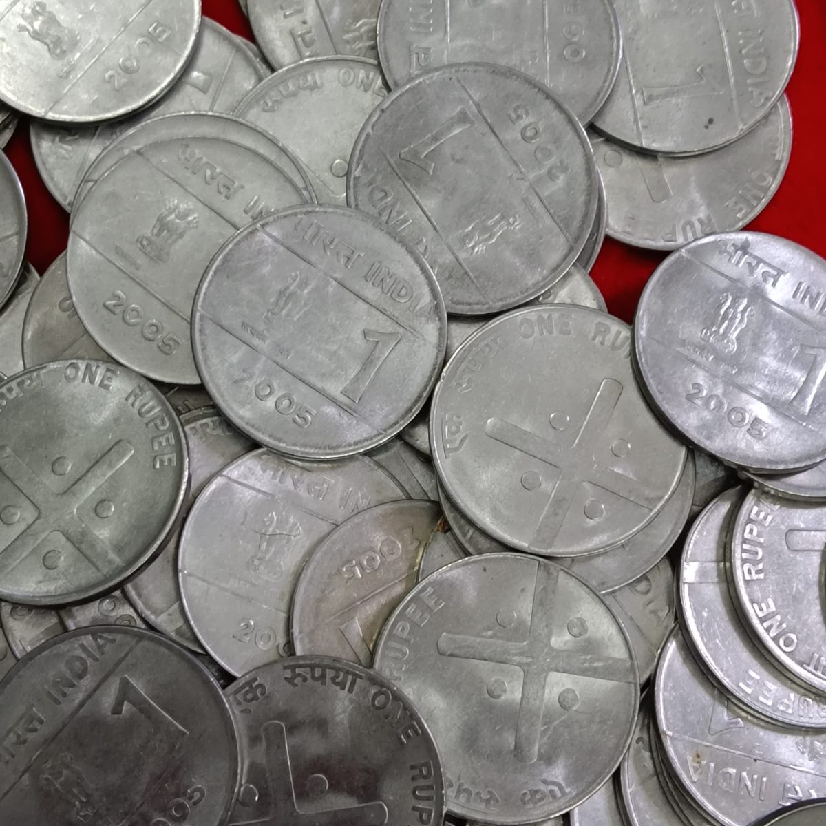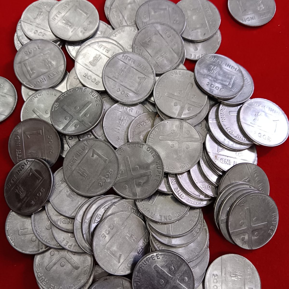 - One Rs Cross Scare Coin 2005 Calcutta Mint Unc Condition 100 Pcs Given Open Pkt Coins