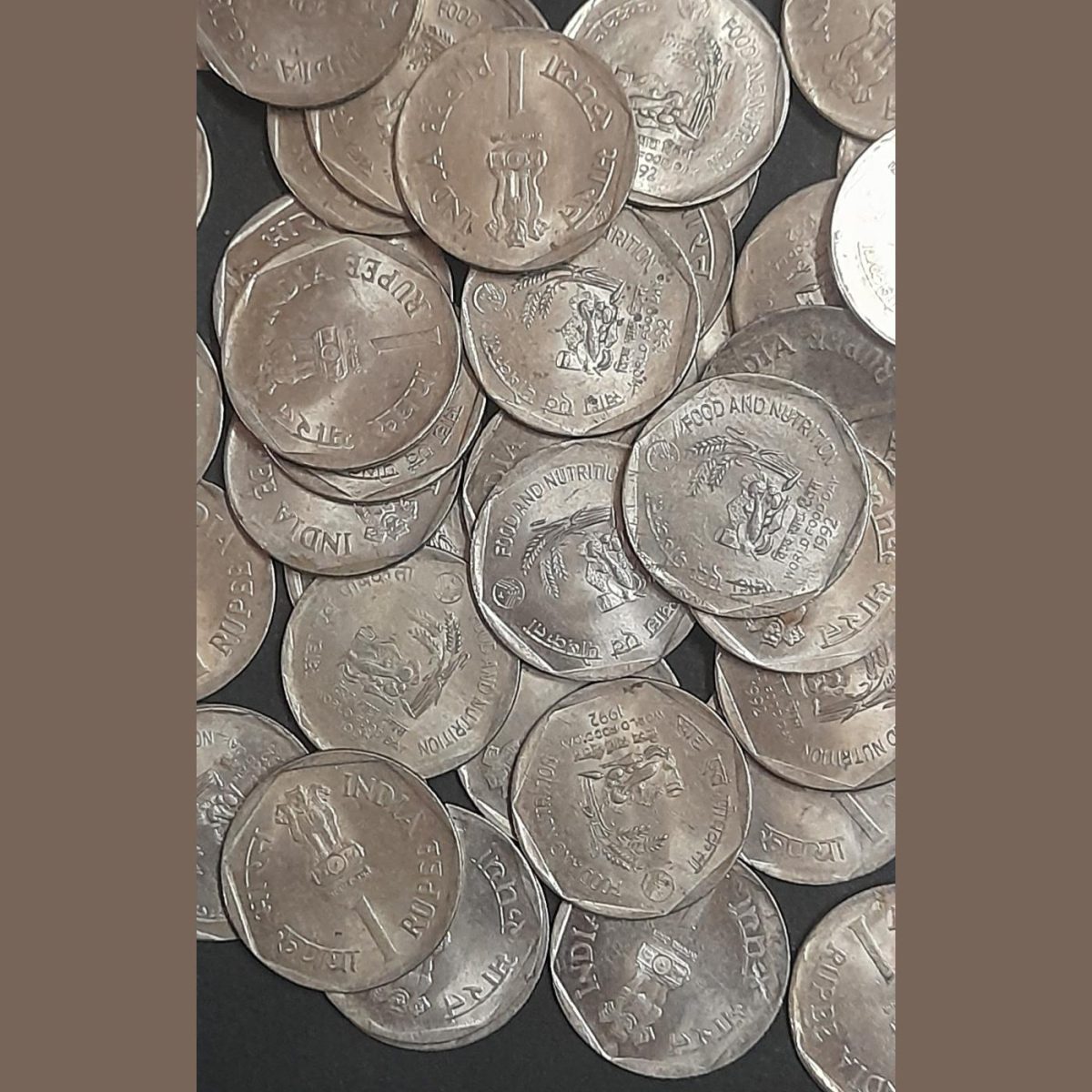 One Rs Cu ni Scare Coin Food And Nutrition World Food Day 1992 XF Condition 50 Pcs Given