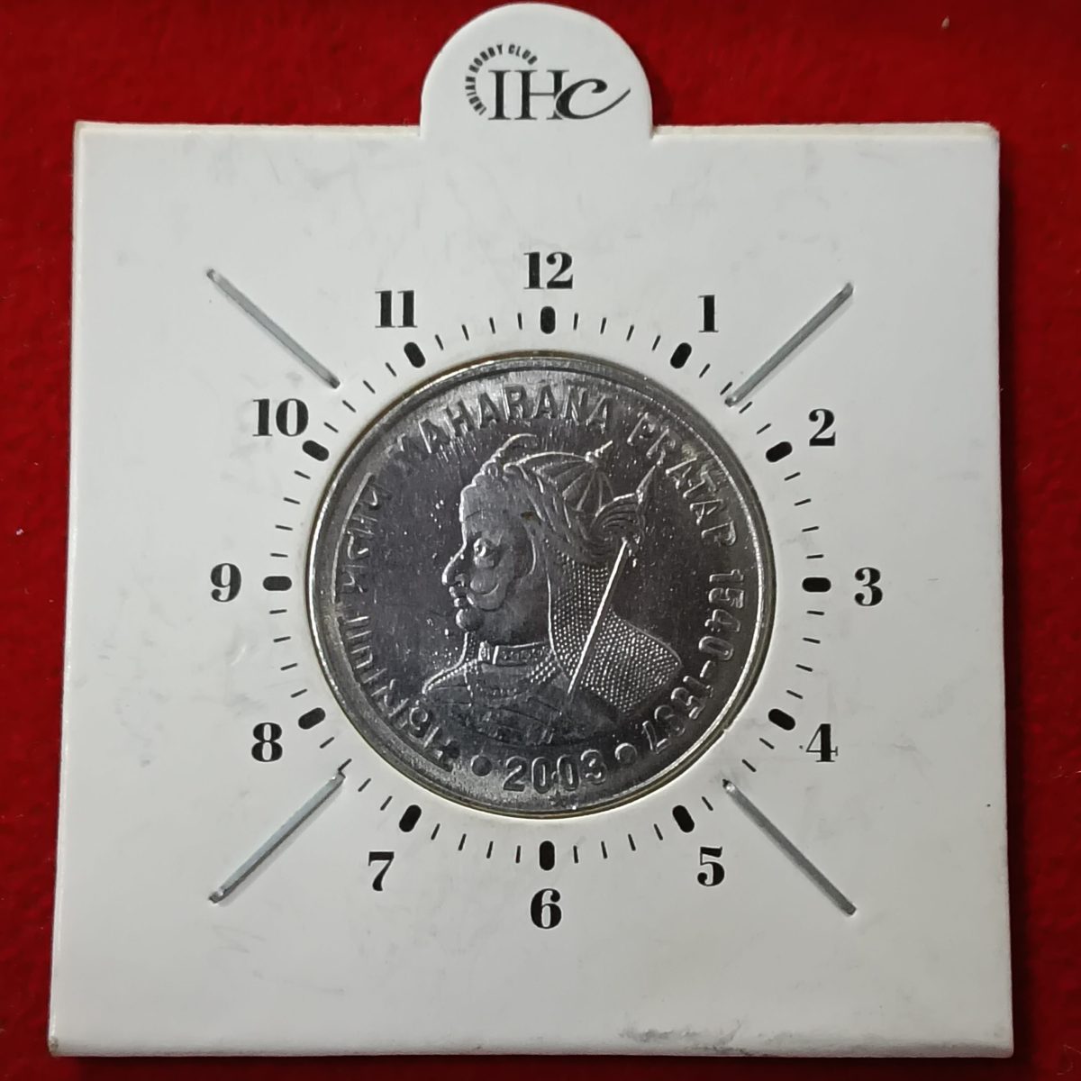 - One Rs FSS Maharana Pratap Ji Ex Rare Error 1″o Clock Rotation Error Hyderabad Mint 2003 Year