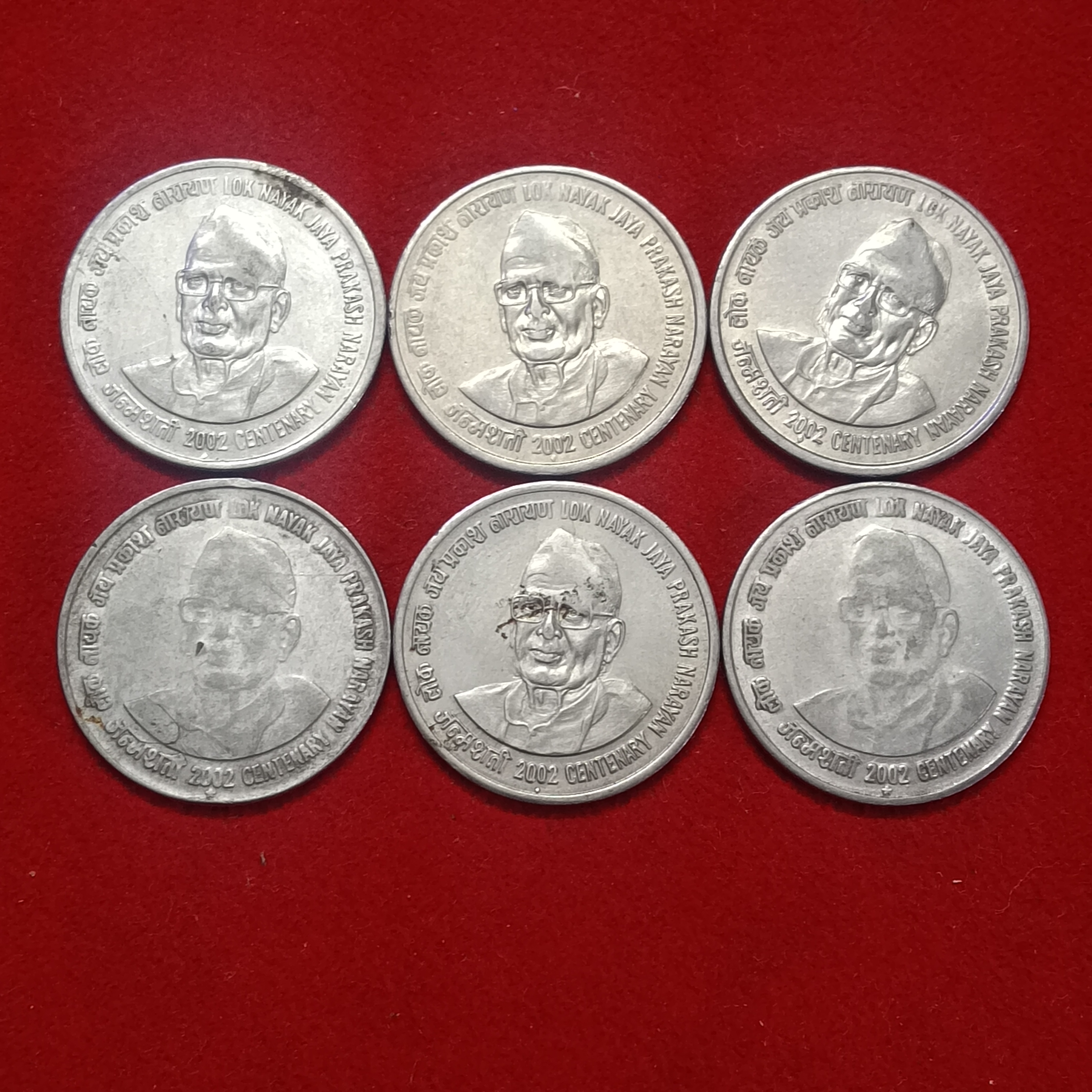 One Rs FSS Scare Coin Lok Nayak Jaya Prakash Narayana Centenary 2002 Year Hyderabad or Bombay Mint 10 Pcs Given