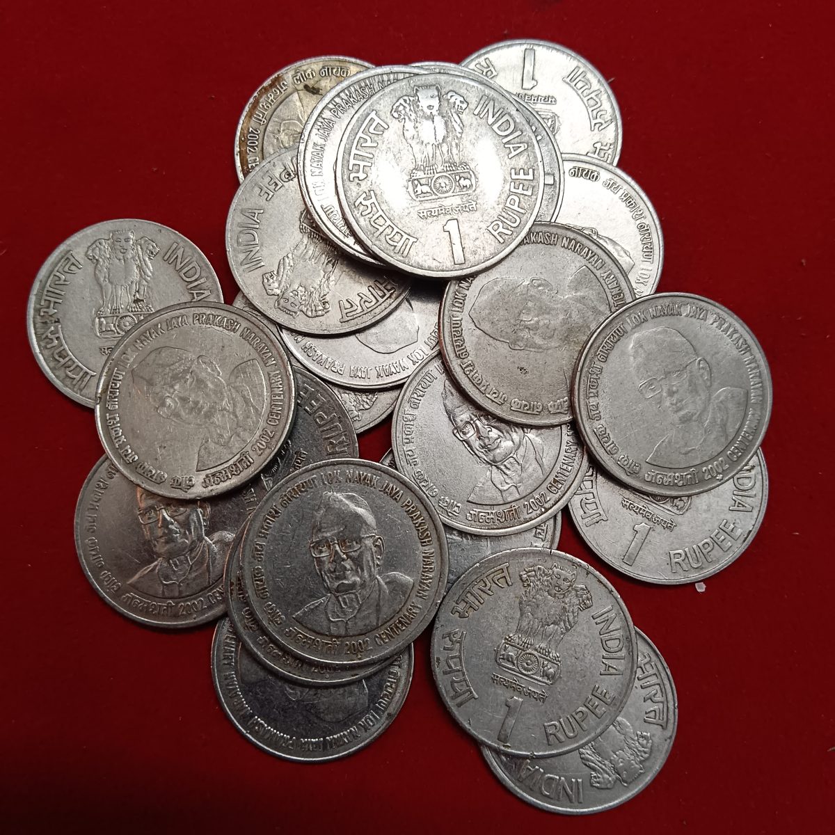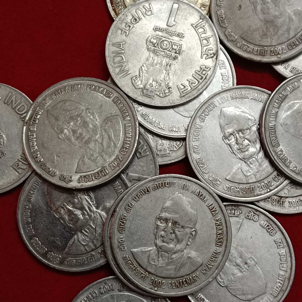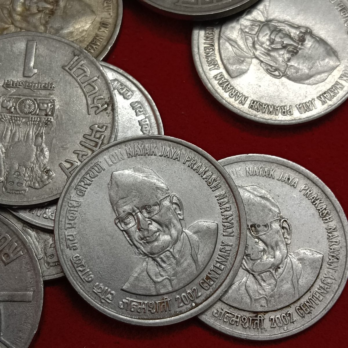 - One Rs FSS Scare Coin Loknayak Jaya Prakash Narayan Centenary 2002 Year Bombay Mint 25 Pcs Given