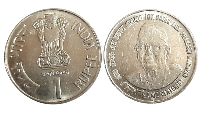 - One Rs lok Nayak Jaya Prakash Narayan Centuray 2002 Scare Coin Hyderabad Mint 10 Pcs Given 03