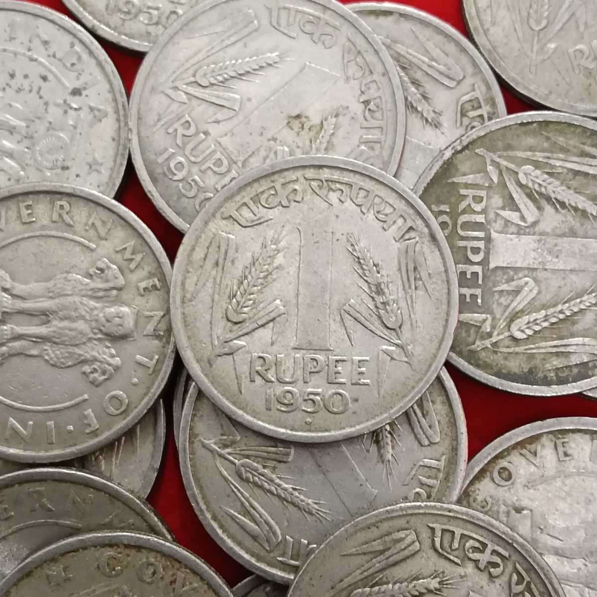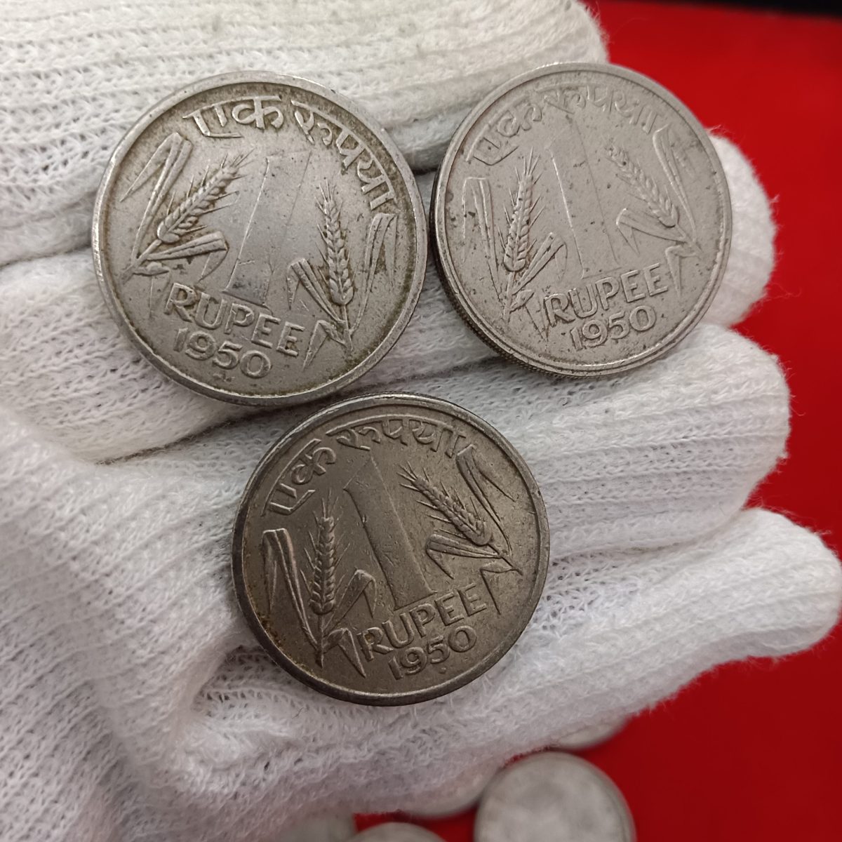 - One Rs Scare Coin Copper Nickel 1950 Year 1 Pcs Given Republic of India