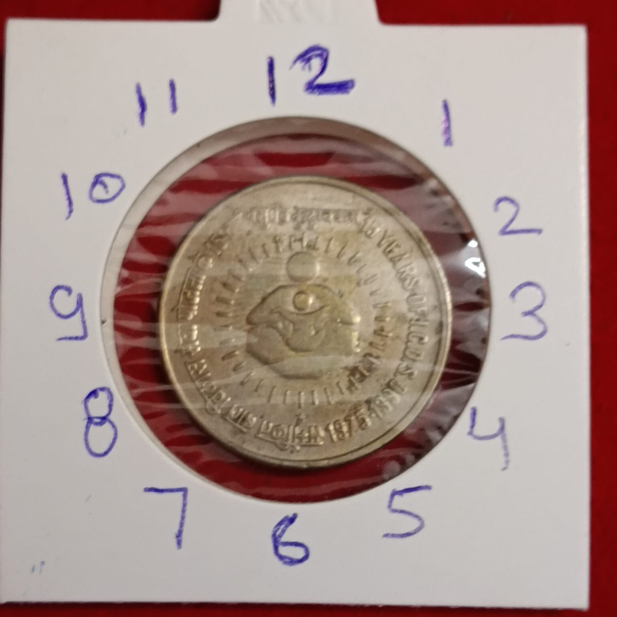 - One Rs Scare Coin Copper Nickel ICDS 1″o Clock Hyderabad Mint RBI Mistake Coin