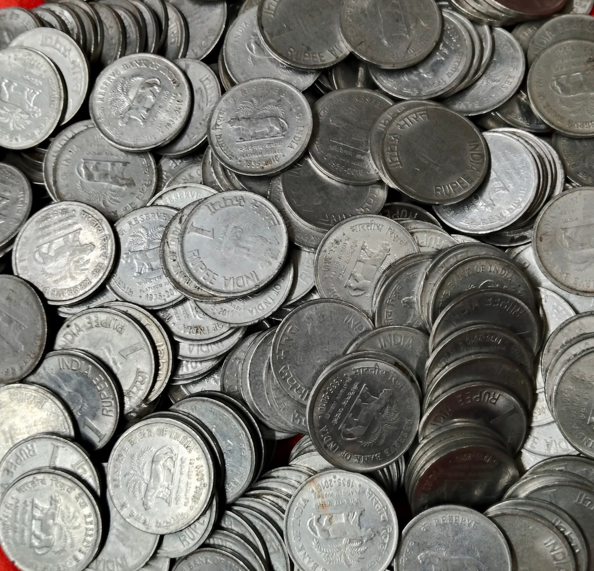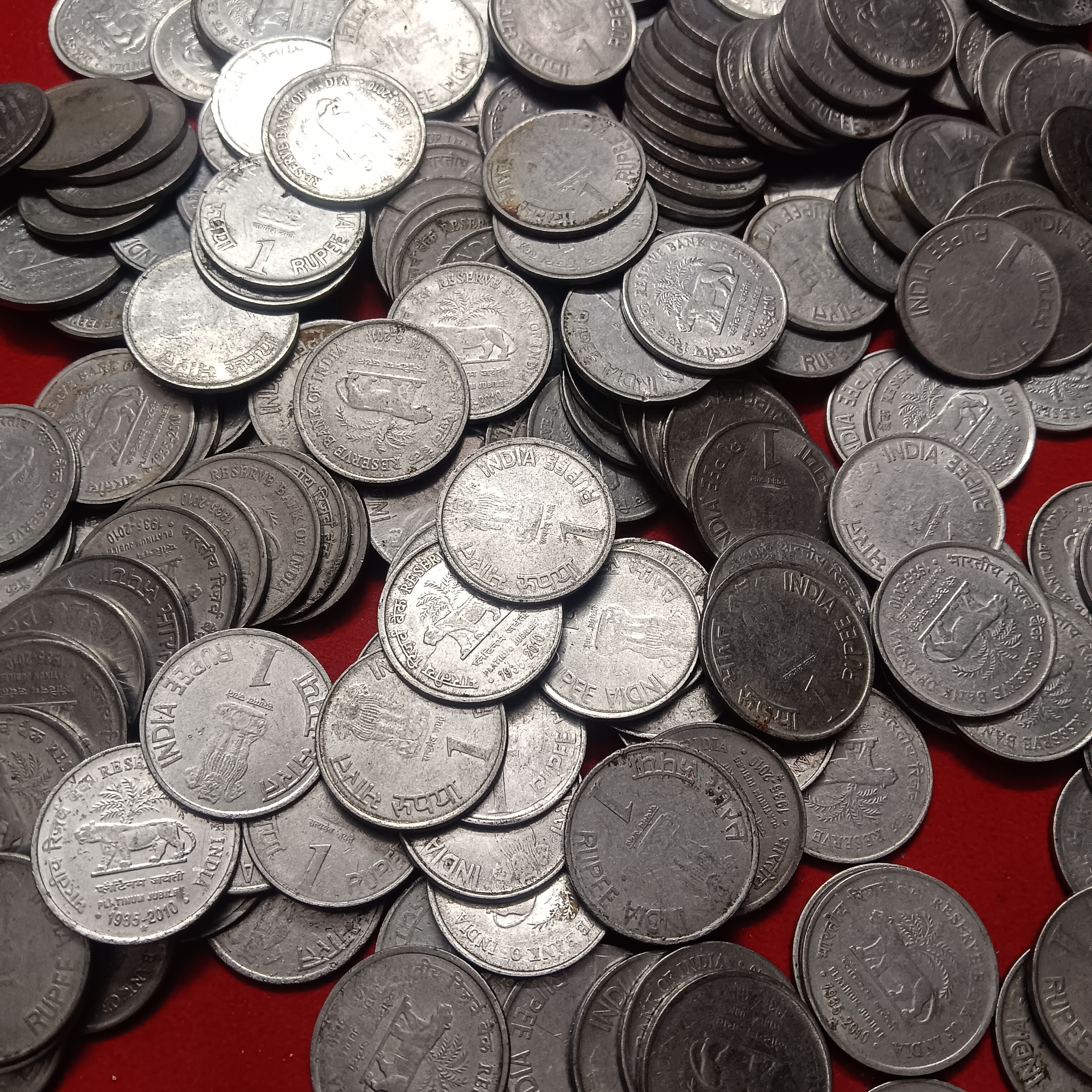 - One Rs Scare Coins Reserve Bank of India Platinum julbliie 1935 -2010 Hyderabad Mint 100 Pcs Given
