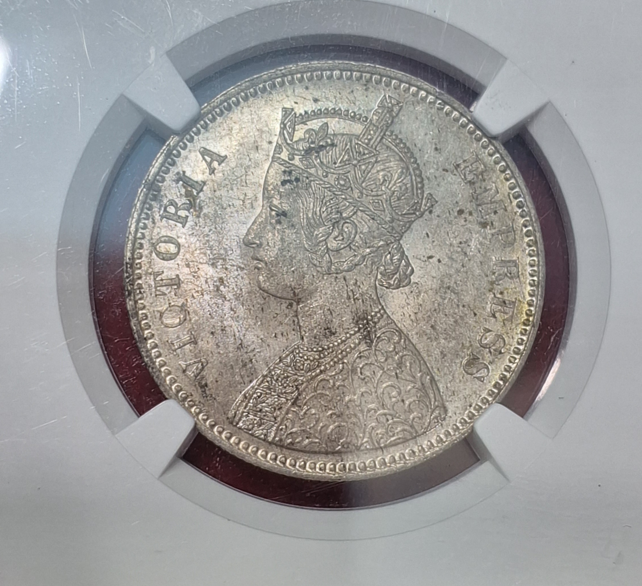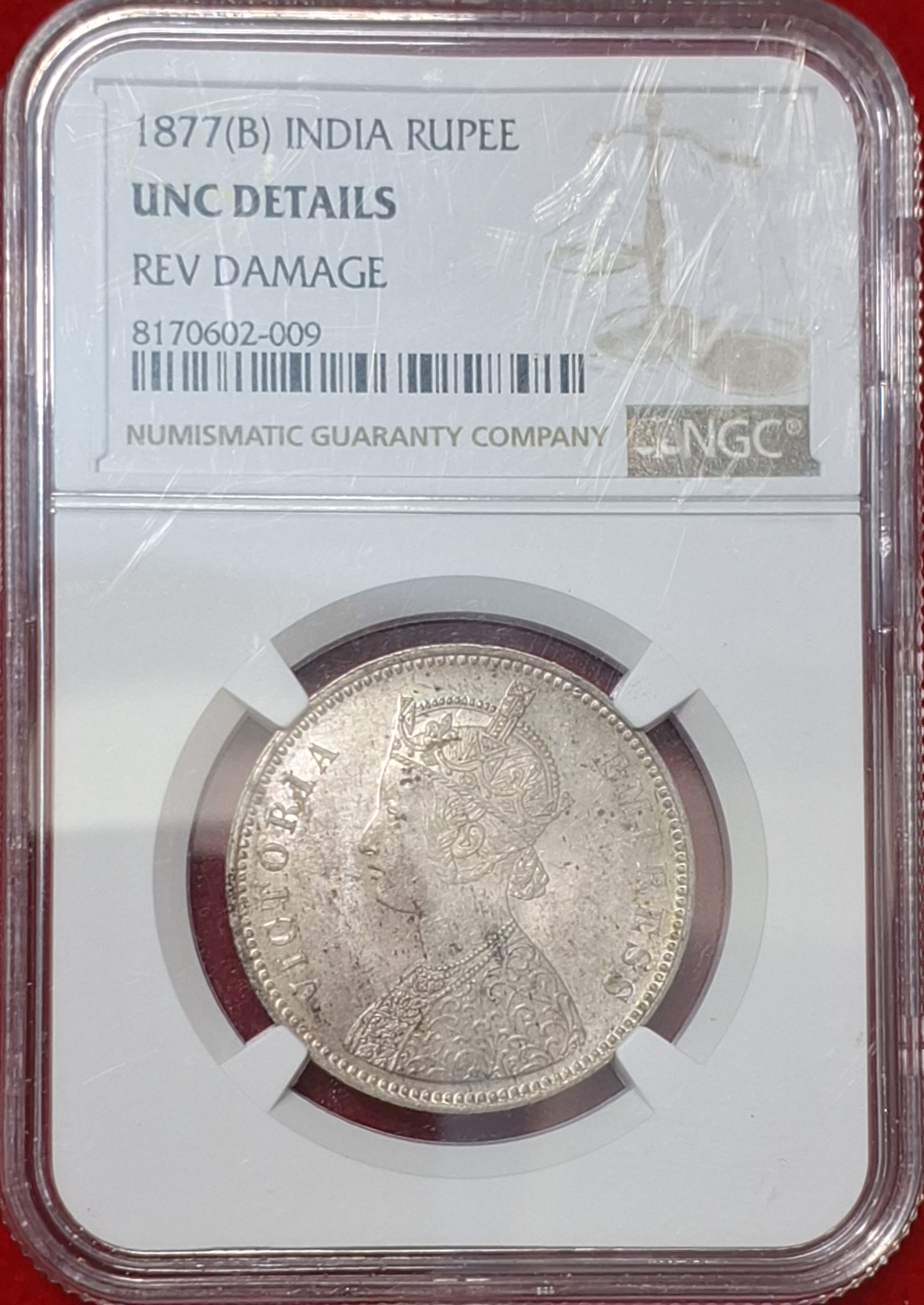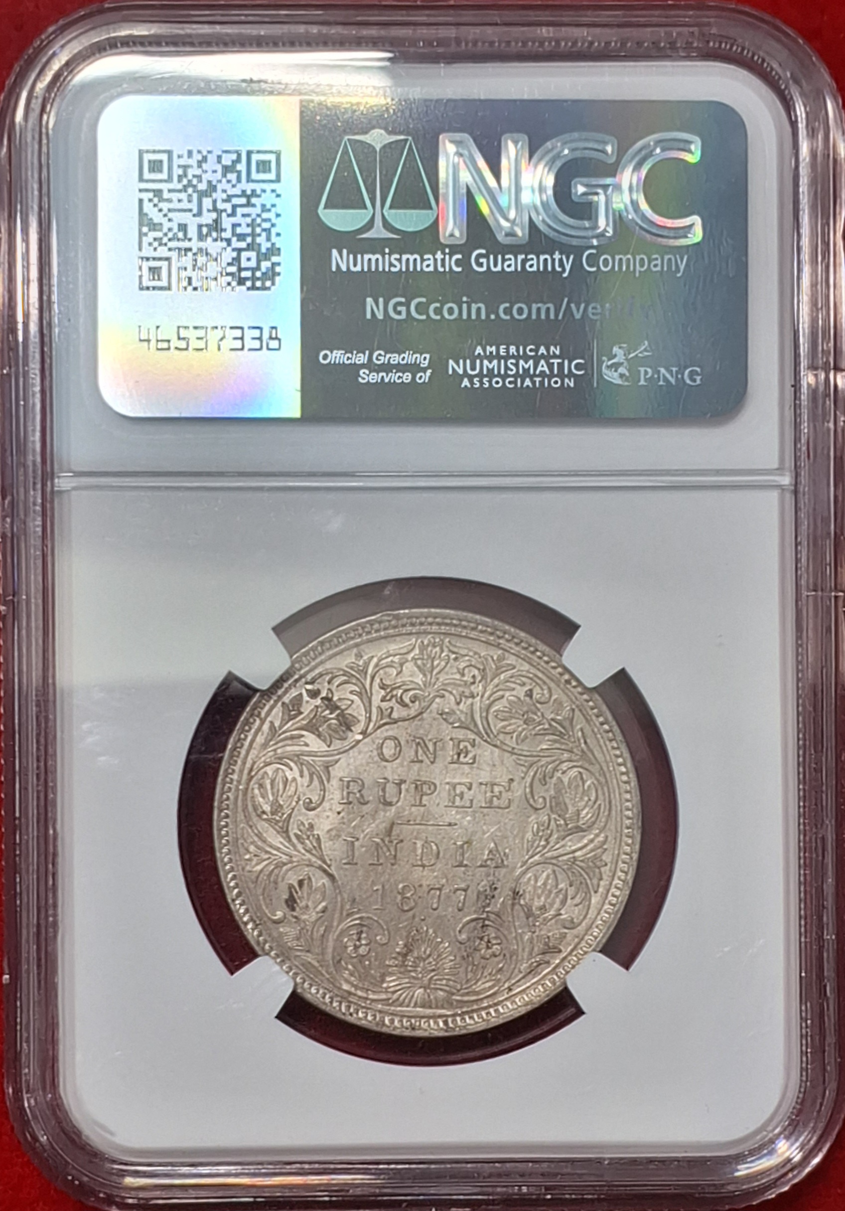 ONE RUPEE 1877(B) UNC DETAIL NGC GRADED COIN VICTORIA EMPRESS