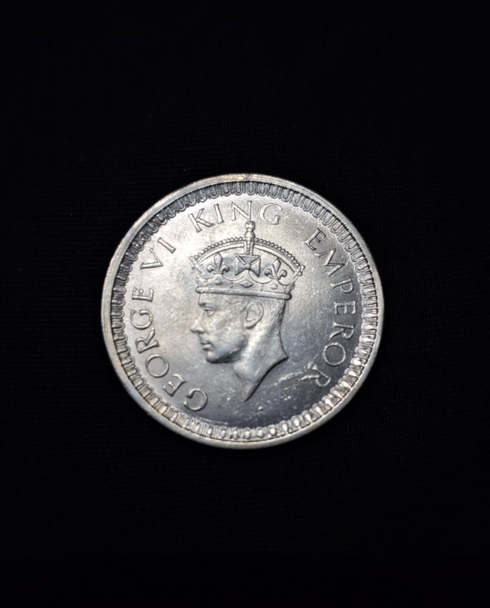Evoke the nostalgia of a bygone era with this exquisite ONE RUPEE 1942 Coin featuring the portrait of George VI, King Emperor of the British Empire. Struck in 1942, this historic coin holds a denomination of 1 Rupee and bears the regal insignia of George VI. Crafted from a durable metal alloy, this coin showcases remarkable craftsmanship and historical significance. It serves not only as a monetary relic but also as a tangible link to the past, offering a glimpse into the colonial era of India. Collectors and history enthusiasts alike will be captivated by the allure of this numismatic treasure, drawn to its rarity and unique historical context. This coin’s collectible value lies in its historical importance, making it a prized possession for those passionate about preserving and showcasing relics of the past. Whether displayed as part of a collection or kept as a cherished memento, this ONE RUPEE 1942 Coin is a testament to the rich heritage of India’s numismatic history.