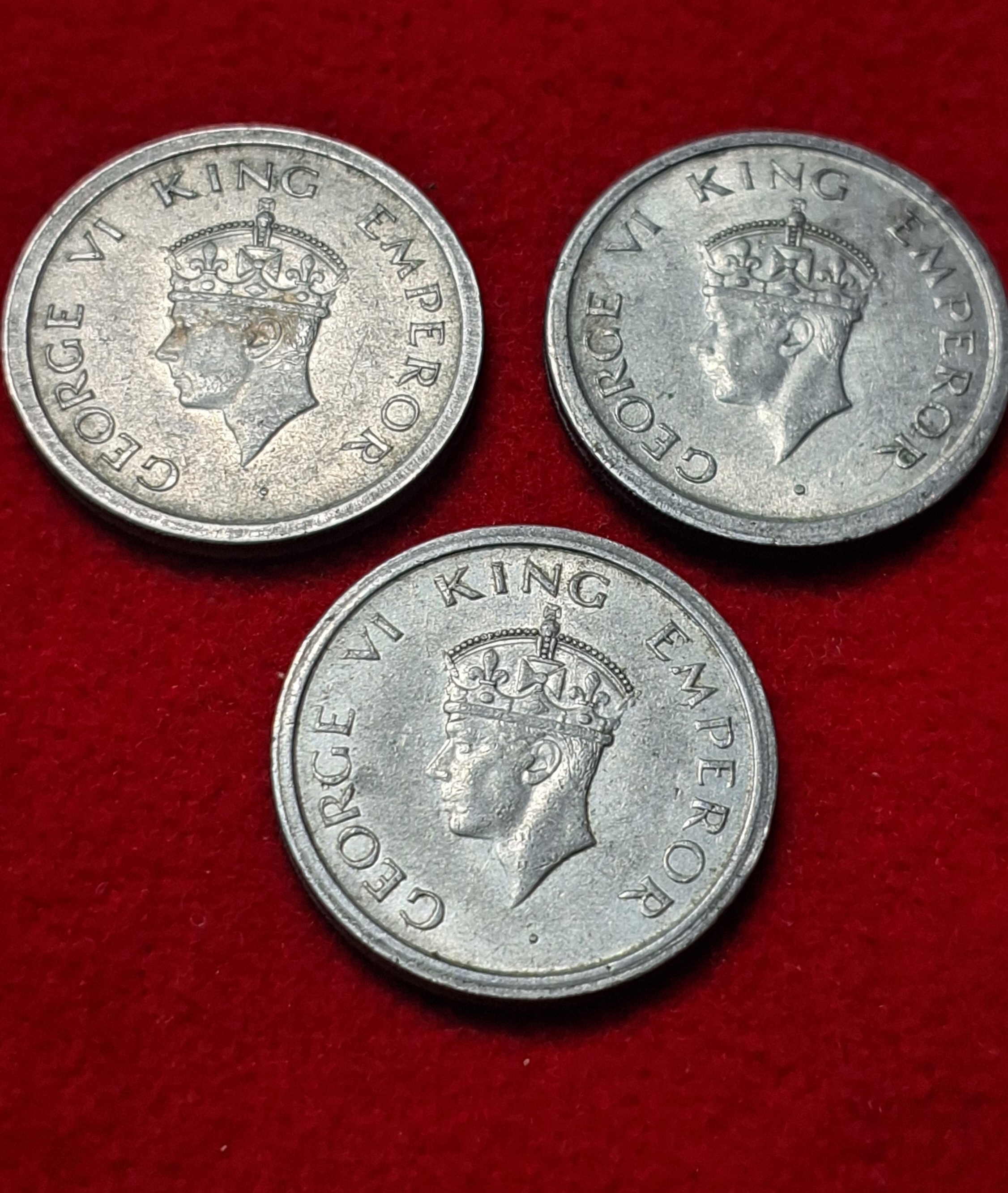 ONE RUPEE 1947 3 COIN SET GEORGE V KING EMPEROR COIN