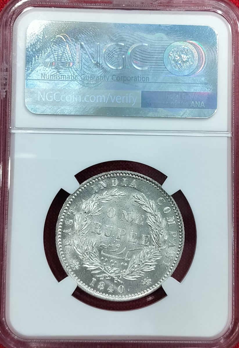 The year 1840 marked a significant era in numismatic history, reflecting the colonial influence of the British Empire in India. This coin serves as a tangible link to the past, offering a glimpse into the economic and political landscape of the time. Its NGC grade of MS 62 signifies a superior quality preservation, enhancing its desirability among collectors.