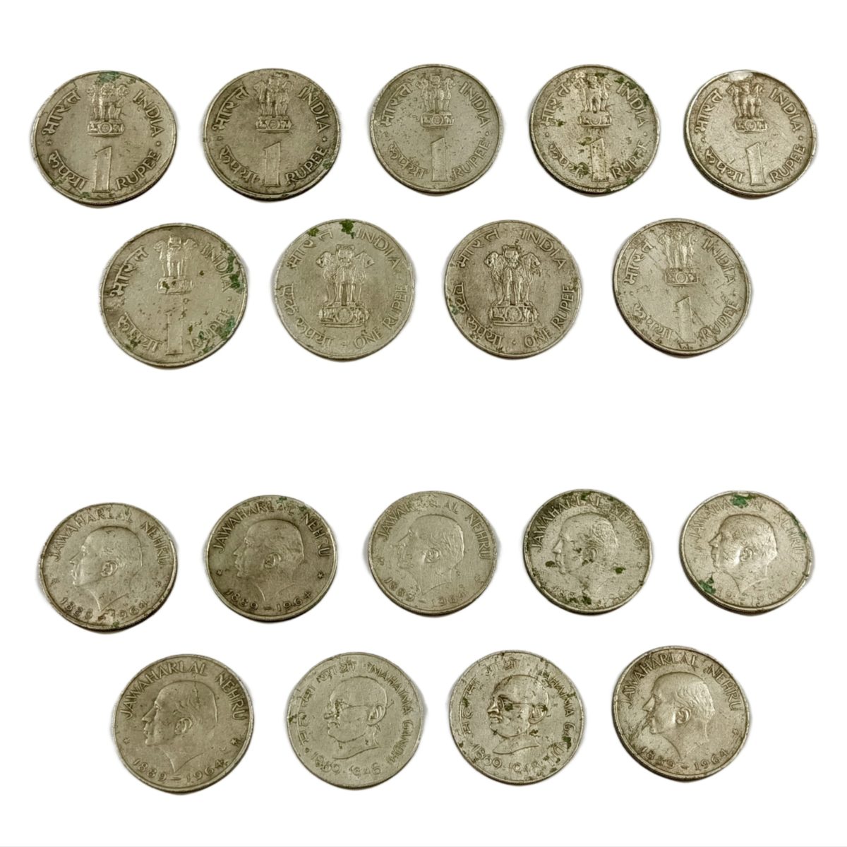 ONE RUPEE Cu/Ni COMMEMORATIVE Issue “GANDHI & NEHRU” Lot 9 Coins are in Collectable Grades.