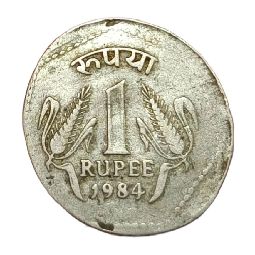 One Rupee Cu/Ni Year 1984 Major ELLIPTICAL Egg Shaped Error **V. SCARE** Collectable Grade.