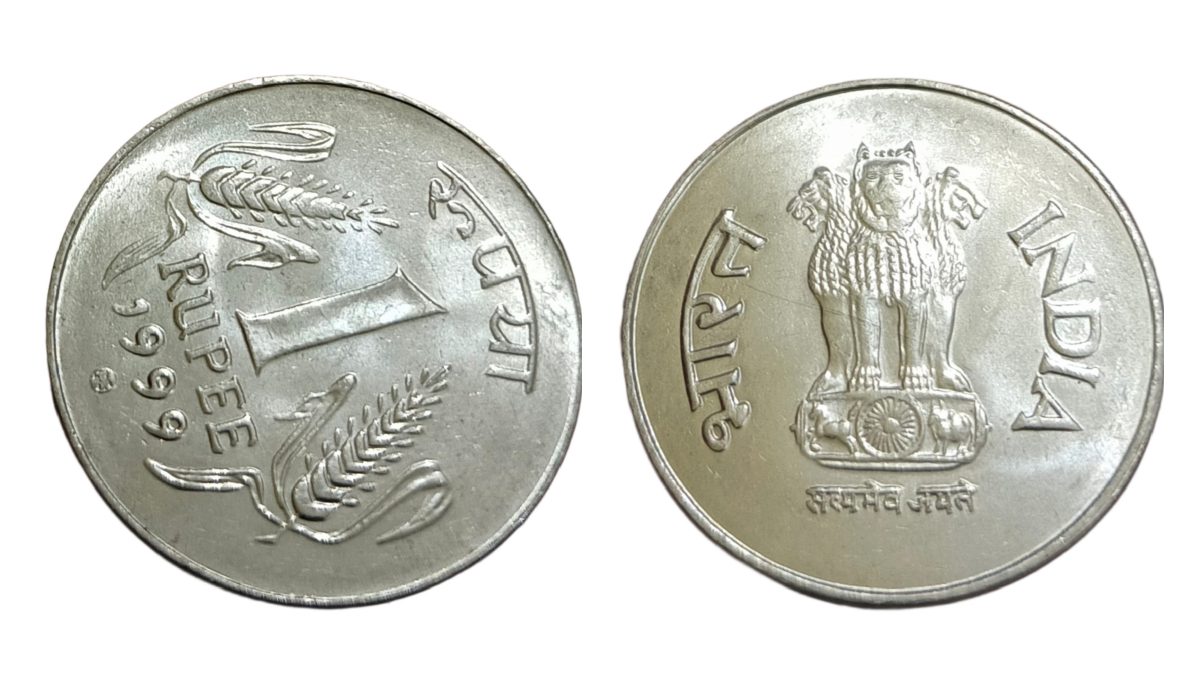 One Rupee Fss Year 1999 FOREIGN Mint CLOCK ROTATION Error **RARE** Top BUNC Grade.
