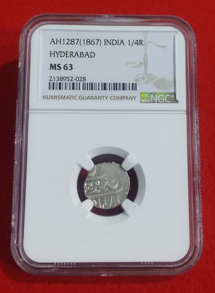 RARE 1/4 RUPEE HYDERABAD NGC GRADED MS 63