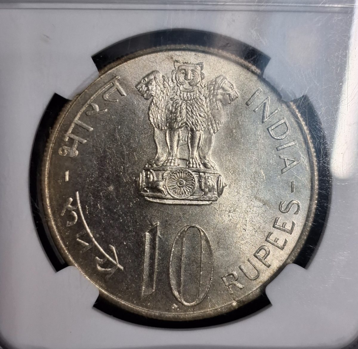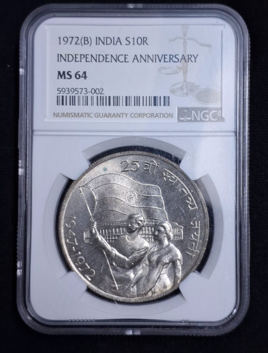 RARE 10 RUPEE GRADED COIN 1972 B INDEPENDENCE ANNIVERSARY COIN