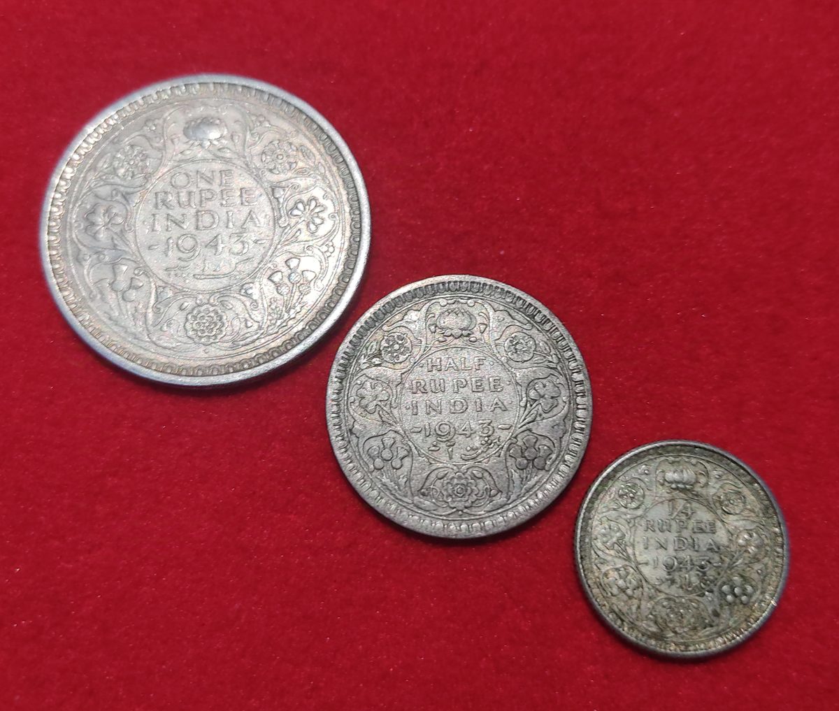 RARE 1943 DATE ONE RUPEE HALF RUPEE QUARTER RUPEE SET