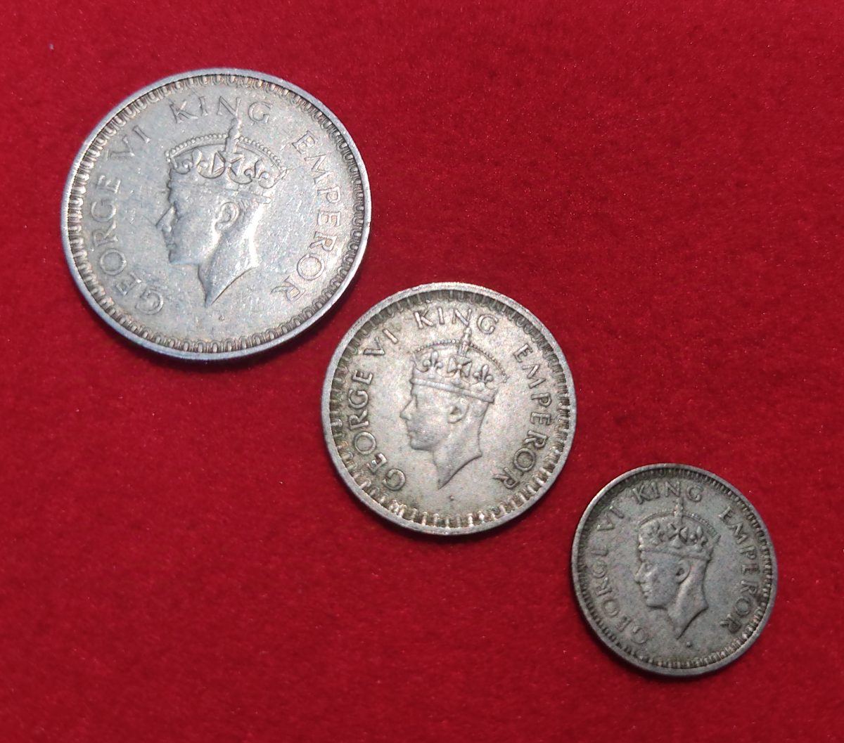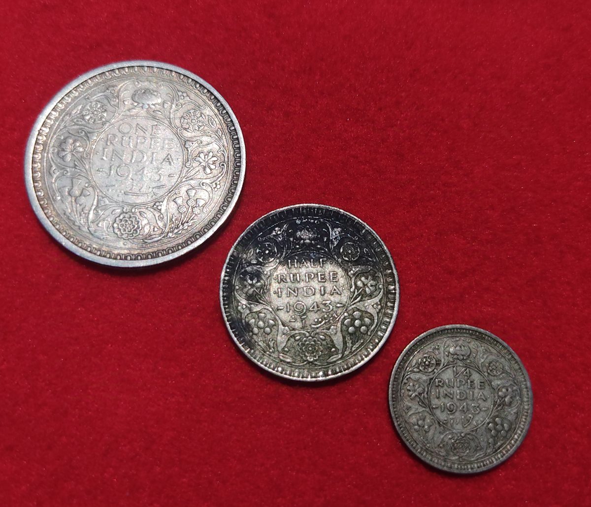 RARE 1943 DATE ONE RUPEE HALF RUPEE QUARTER RUPEE SET