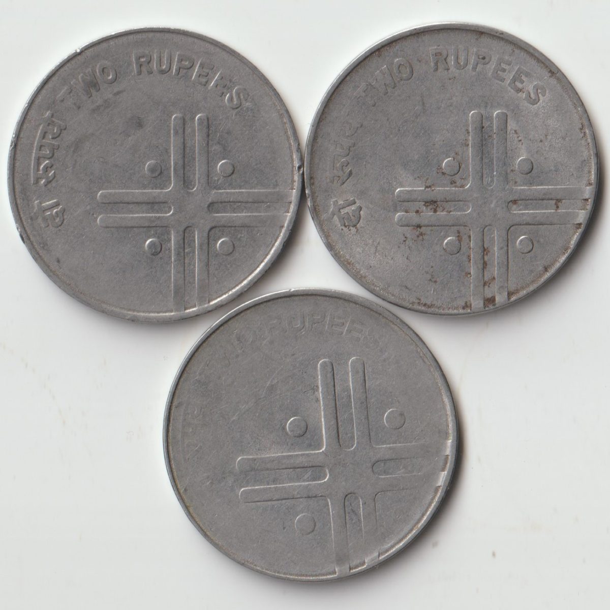 Rare 3 Cross Coins Set of Two Rupees Different Date Variety Cross dividing four dots Stainless Steel Coins of Republic India Coinage