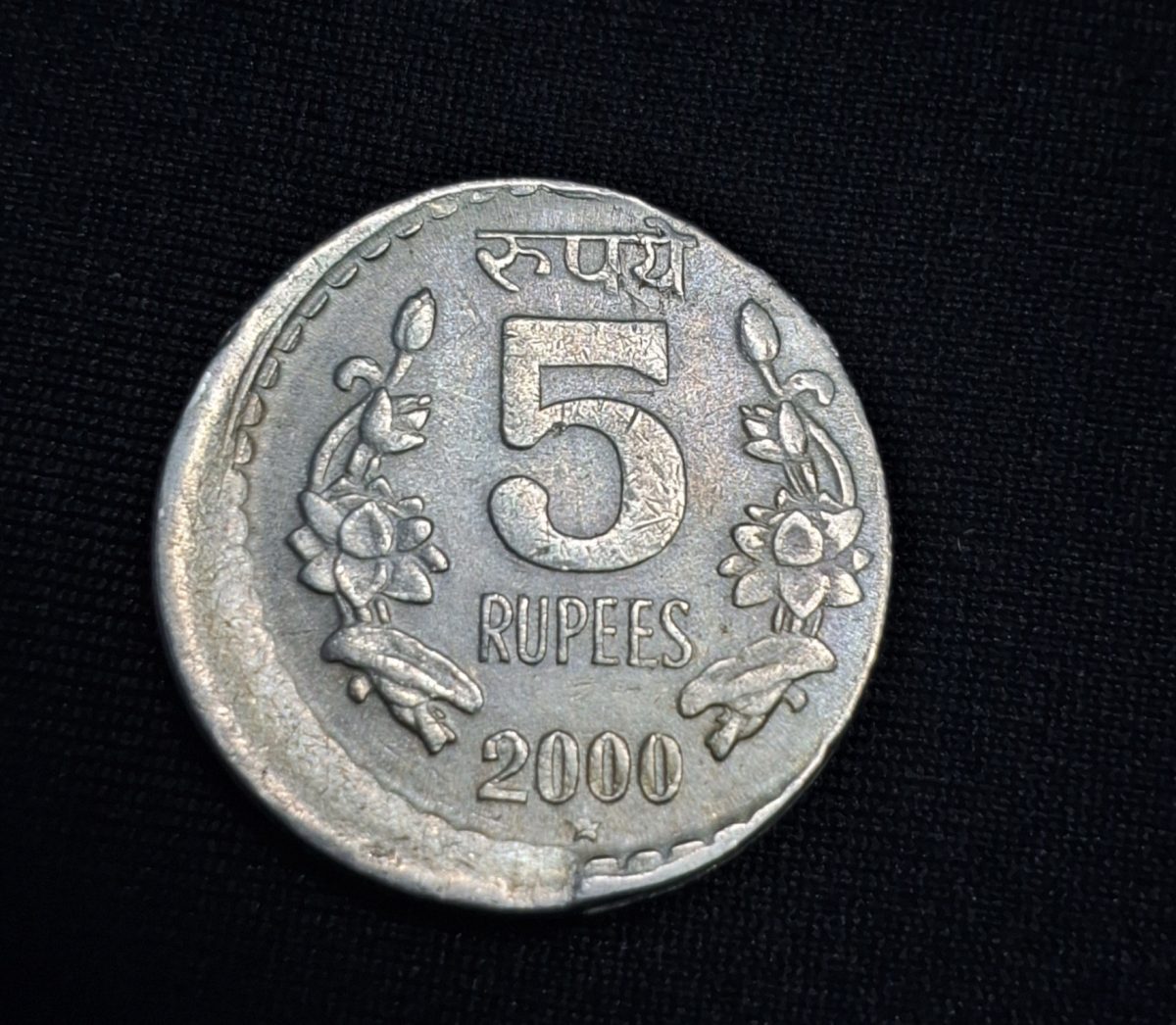 RARE 5 RUPEE 2000 HYDERABAD MINT OFF CENTRE ERROR COIN