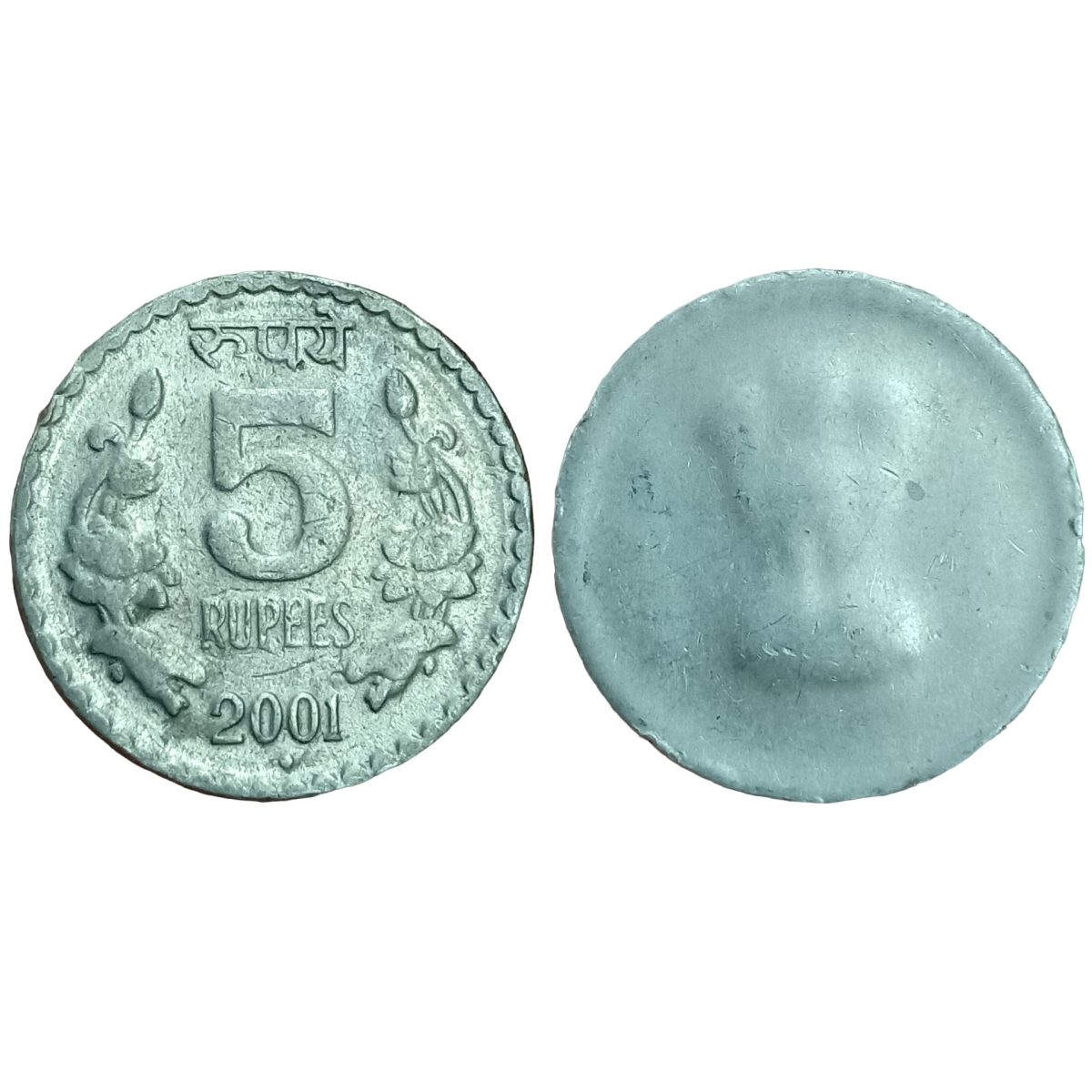 Rare 5 Rupees 2001 Noida Mint of Republic India One Side Blank Error Copper Nickel Coin