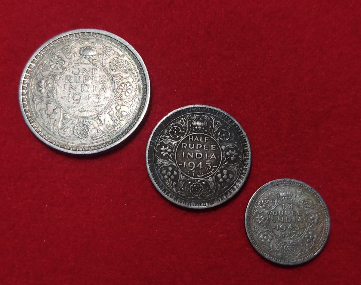 RARE DATE 1943 ONE RUPEE HALF RUPEE QUARTER RUPEE
