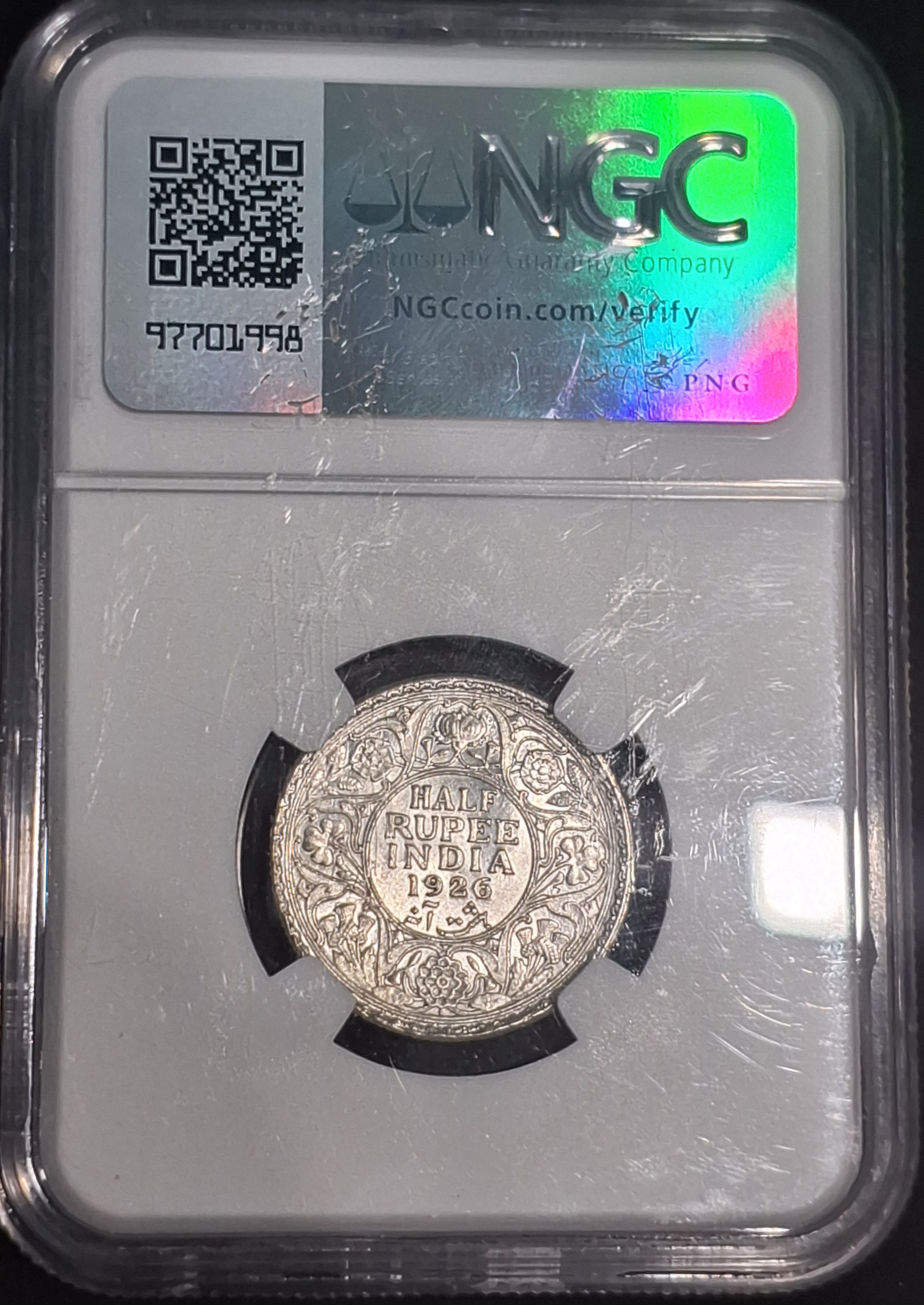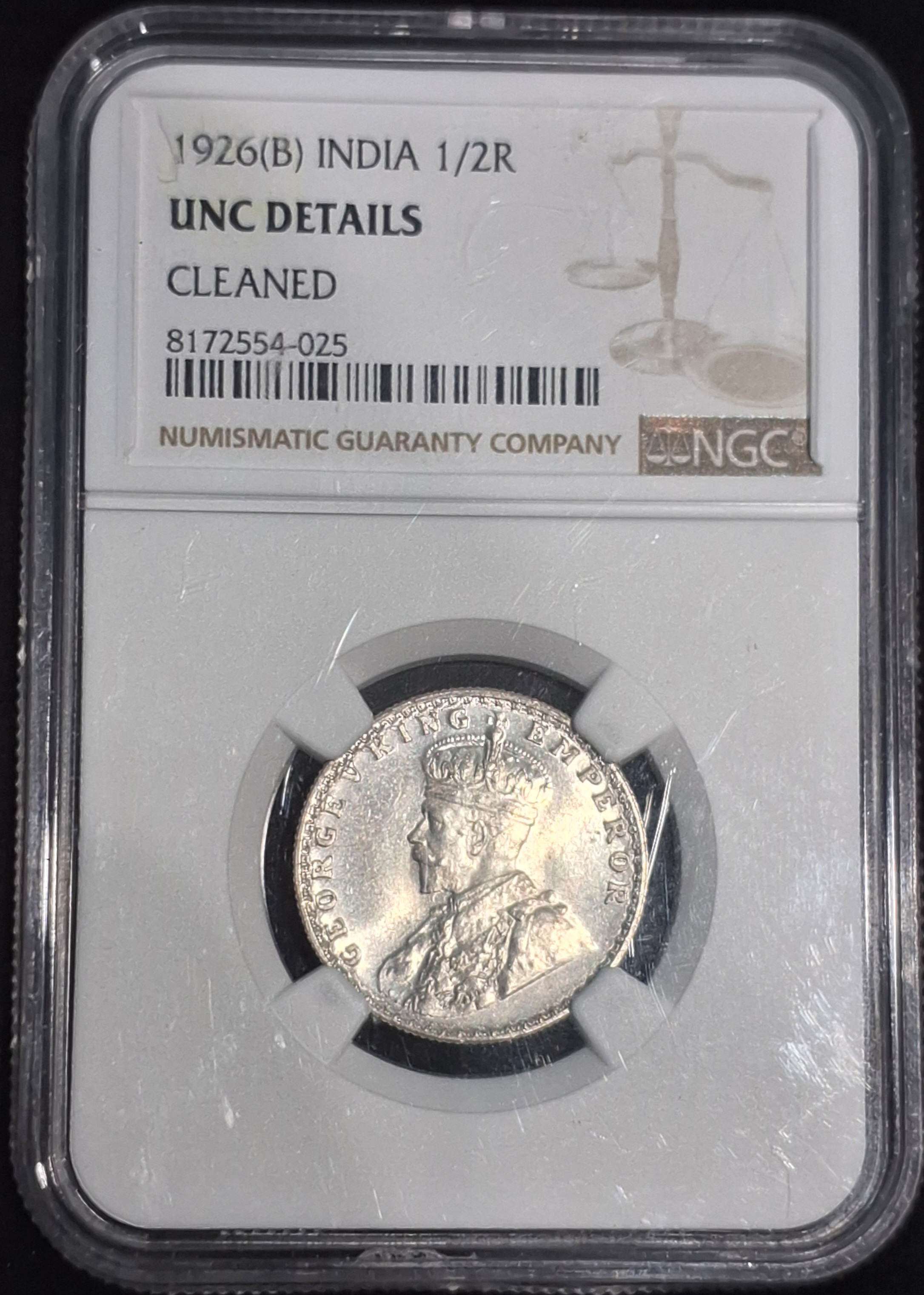 RARE HALF RUPEE 1926 NGC GRADED COIN UNC DETAILS GEORGE V KING EMPEROR COIN