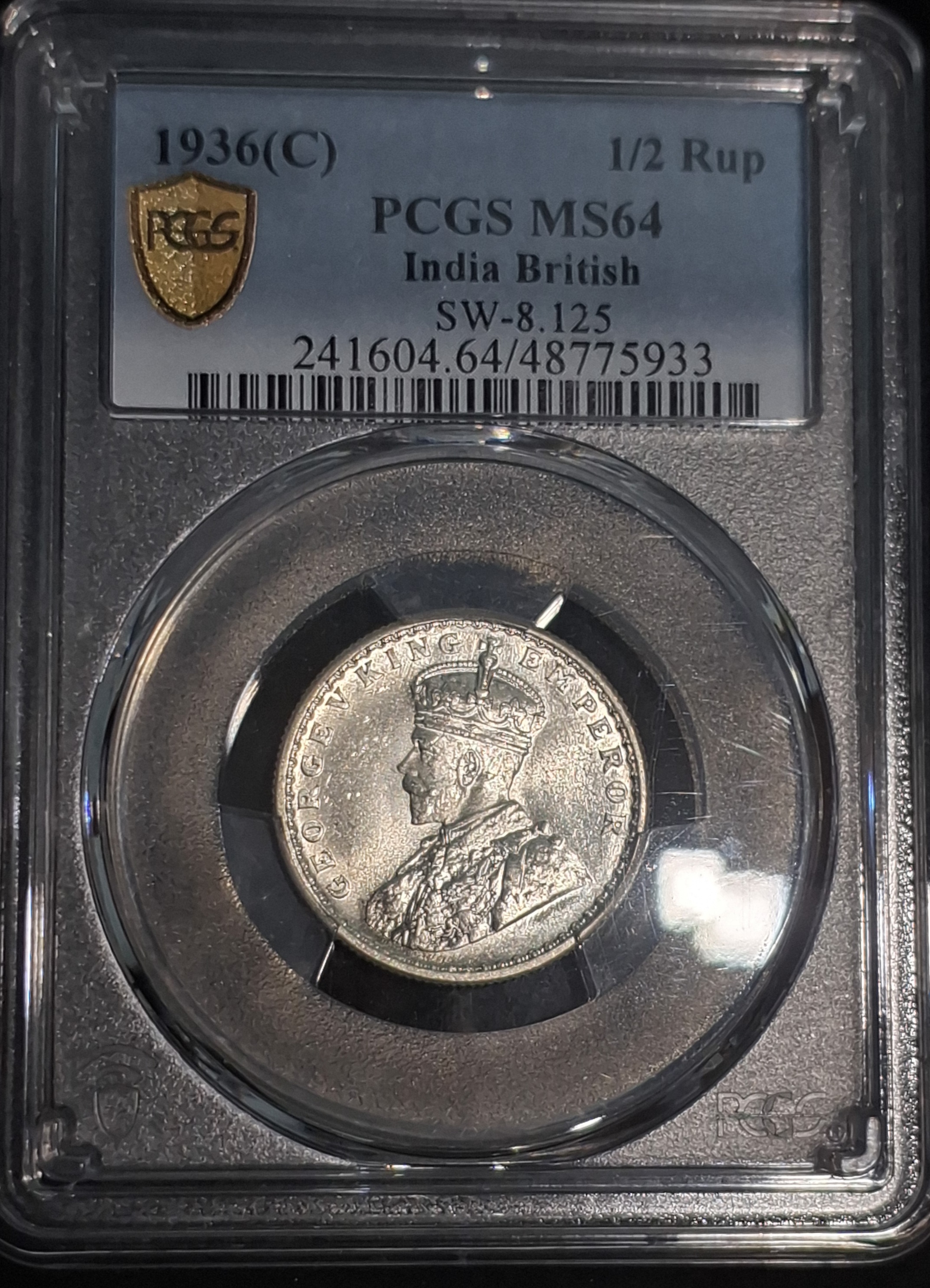 RARE HALF RUPEE 1936 MS 64 PCGS GRADED COIN GEORGE V KING EMPEROR COIN