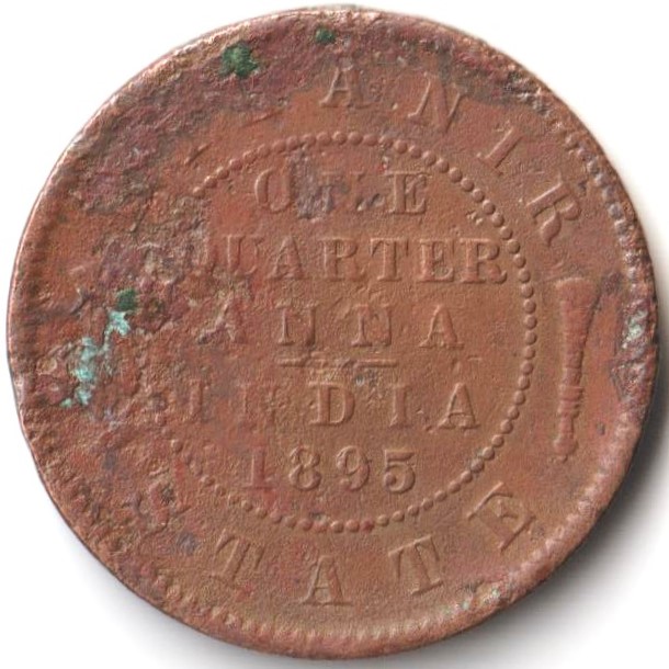 Rare One Quarter Anna 1895 Copper Coin of Victoria Gagan Singh Princely State of Bikanir State