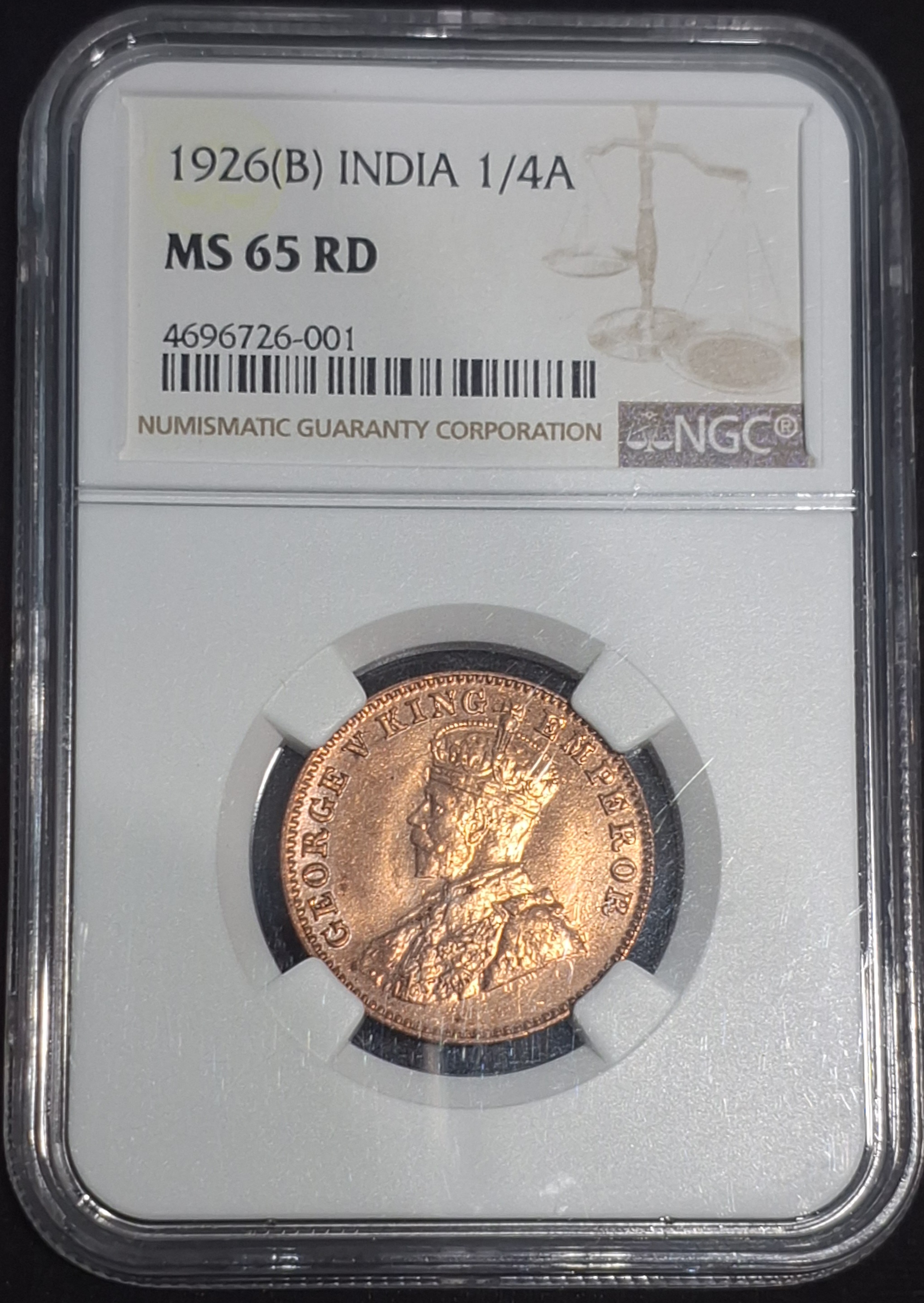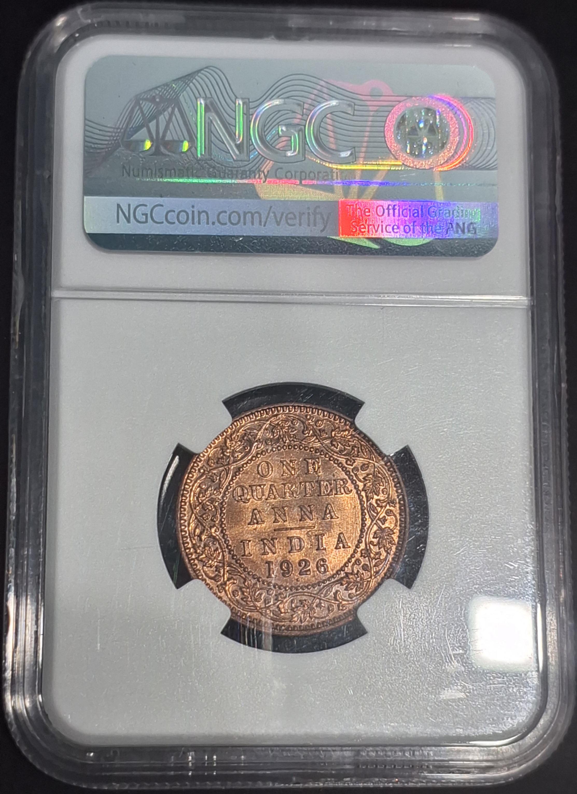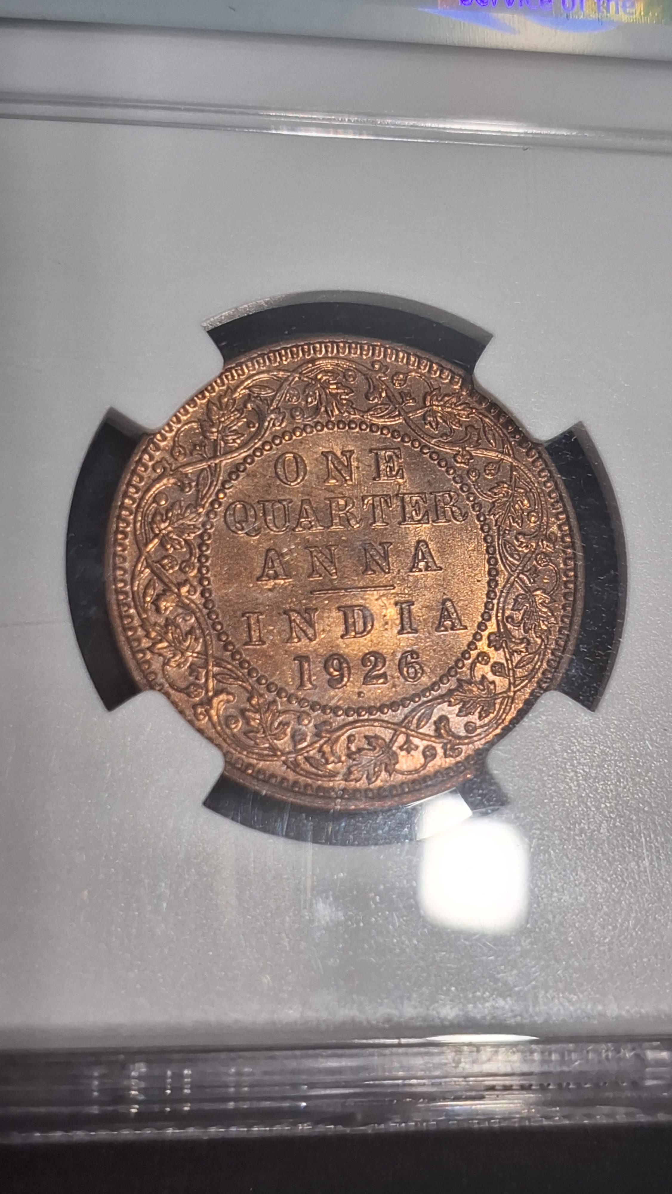 ONE QUARTER ANNA 1926 MS 65 NGC GRADED COIN