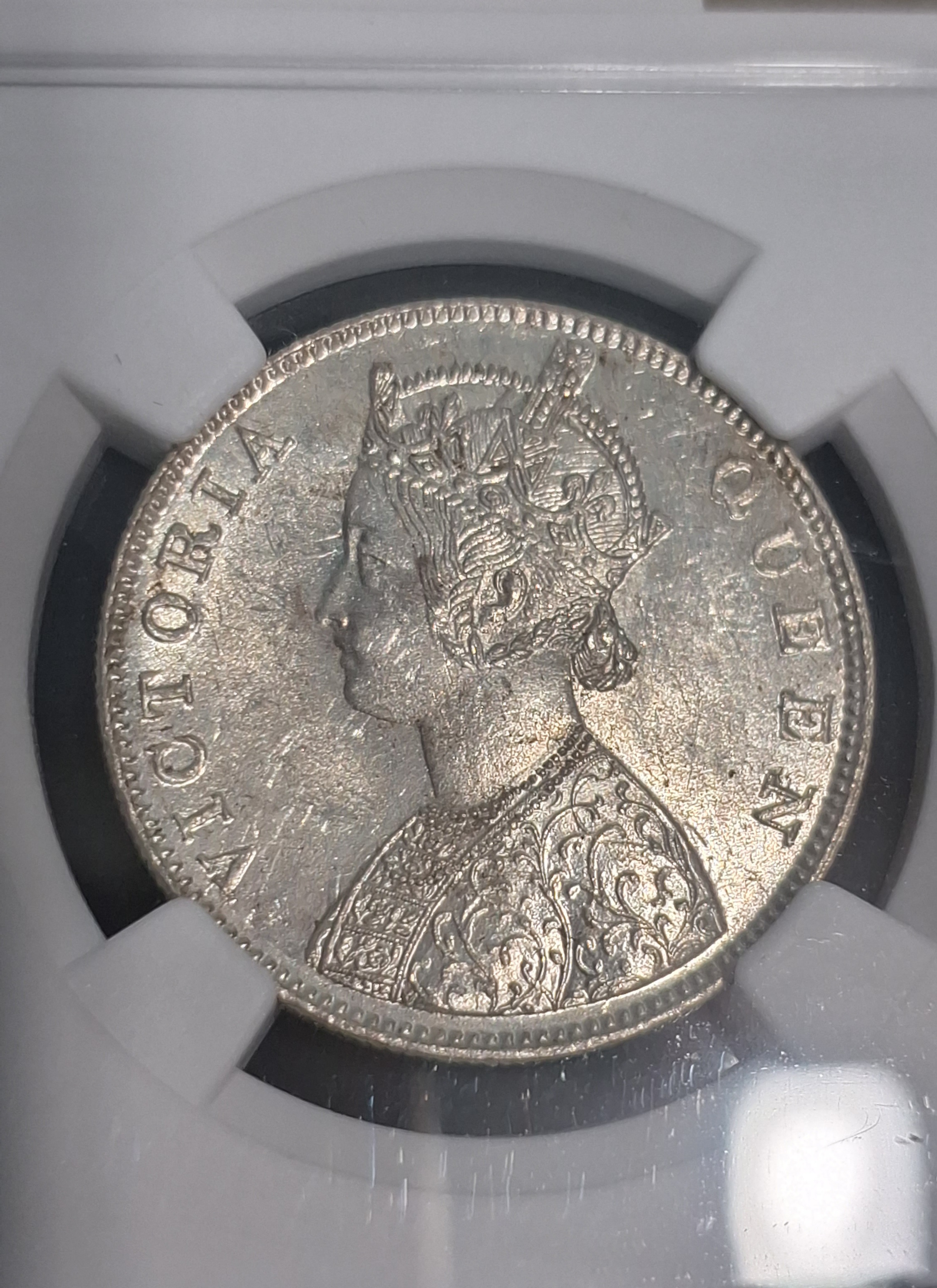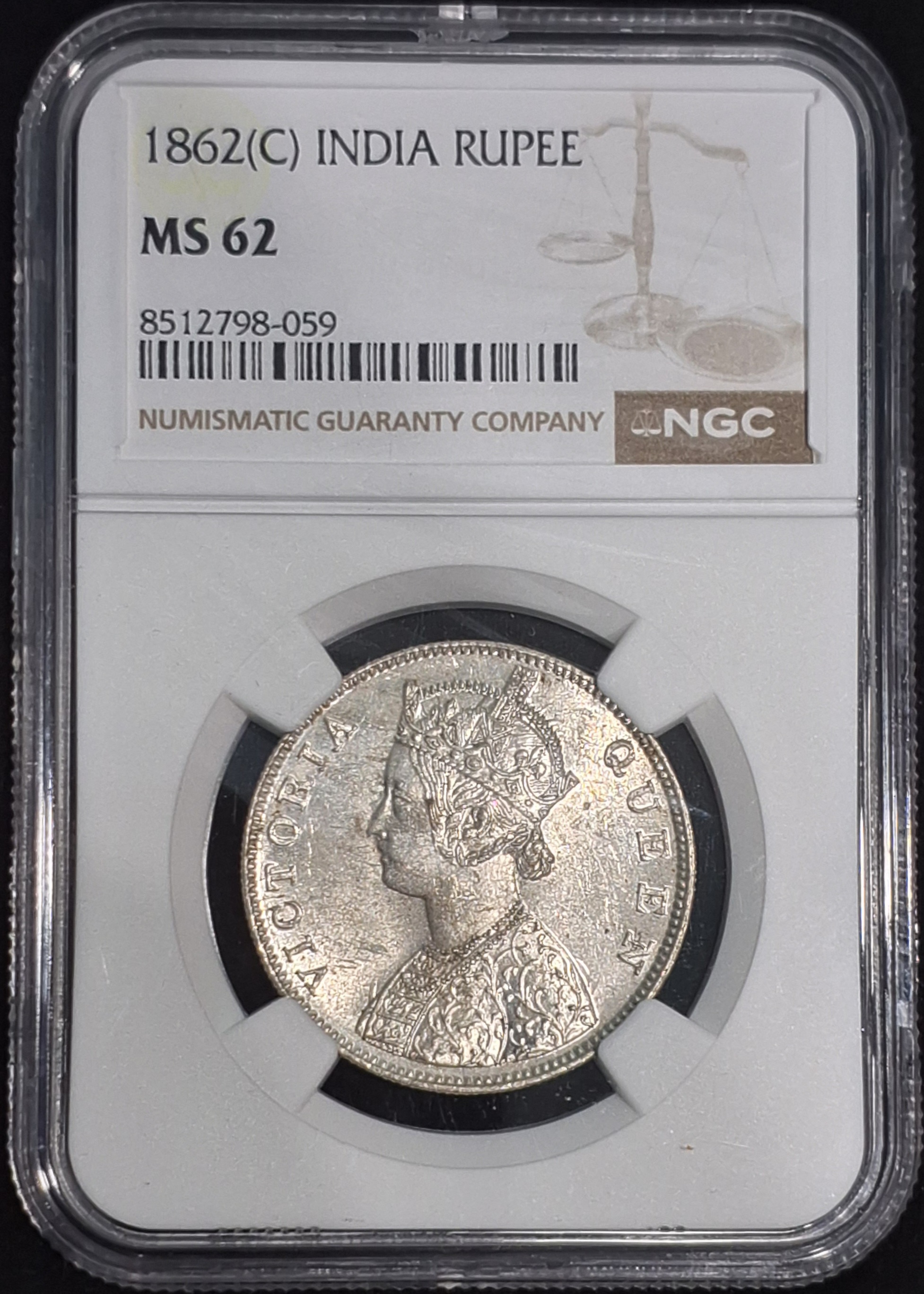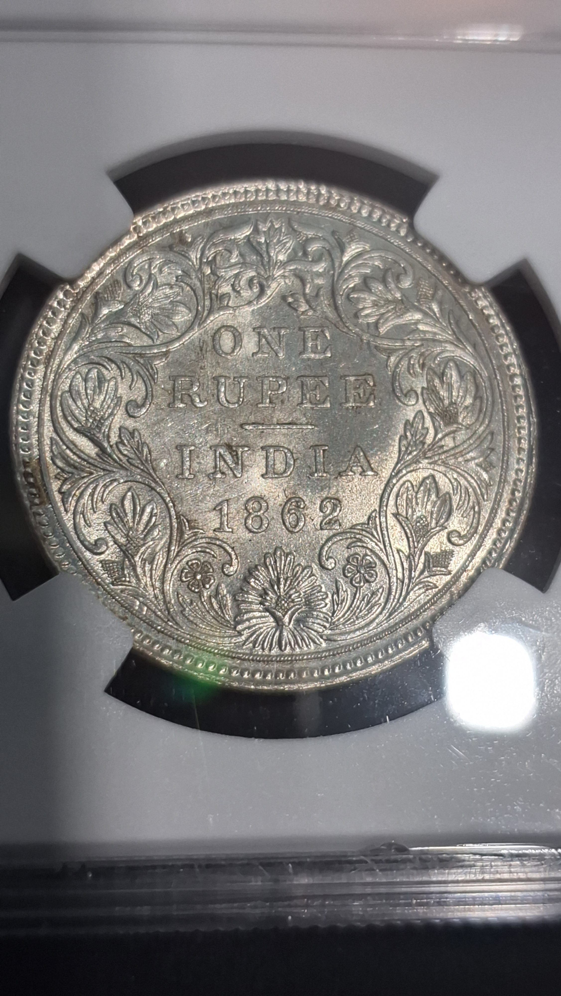 RARE ONE RUPEE 1862 MS 62 NGC GRADED COIN VICTORIA QUEEN