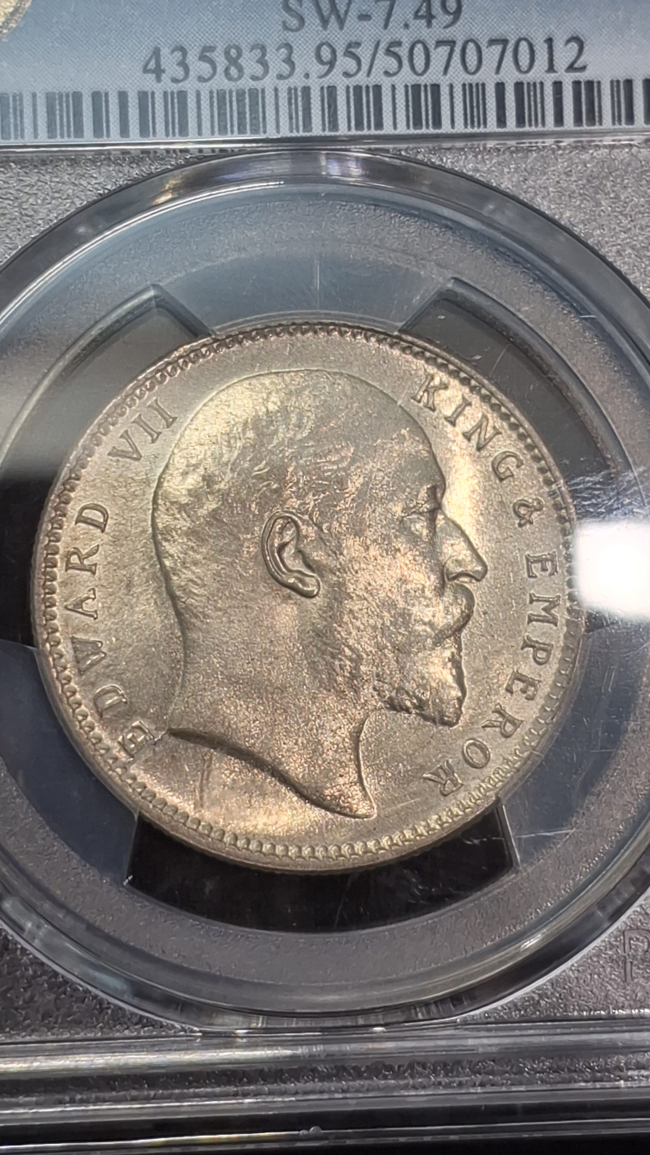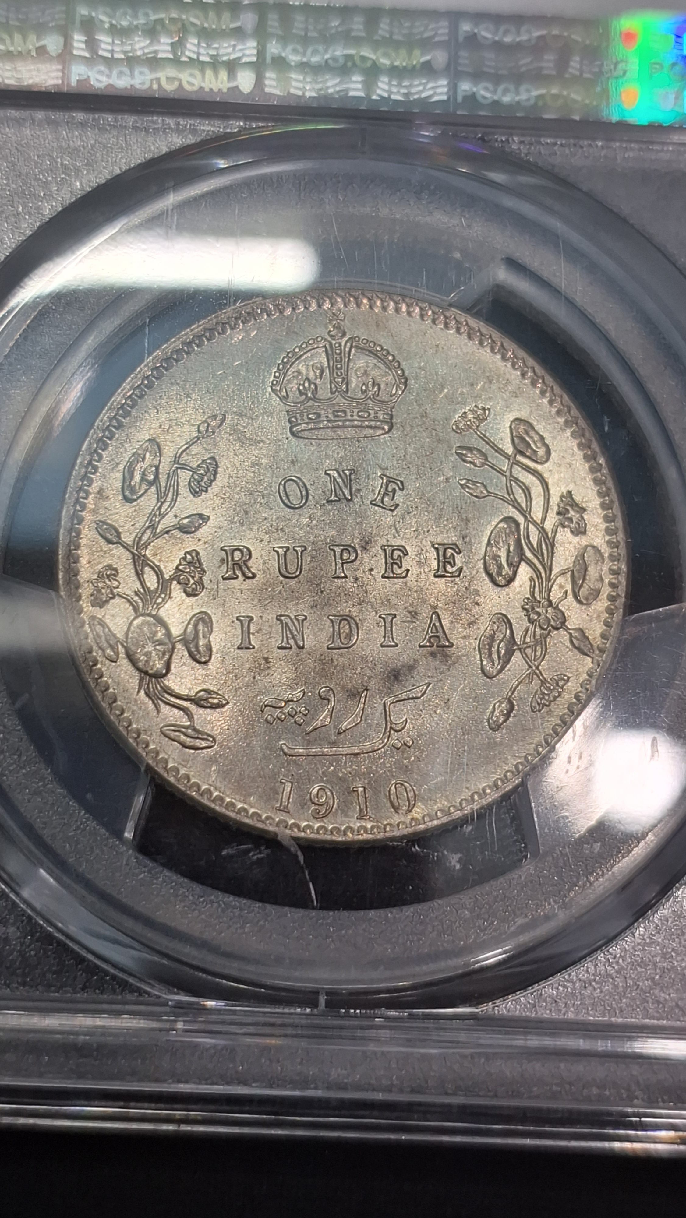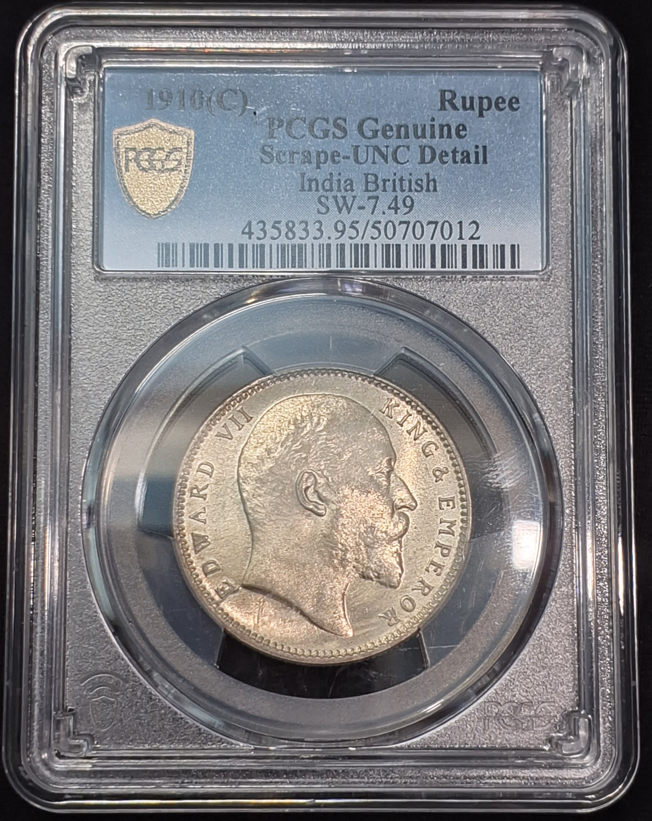 RARE ONE RUPEE 1910 PCGS GRADED COIN UNC DETAIL EDWARD VII KING AND EMPEROR COIN