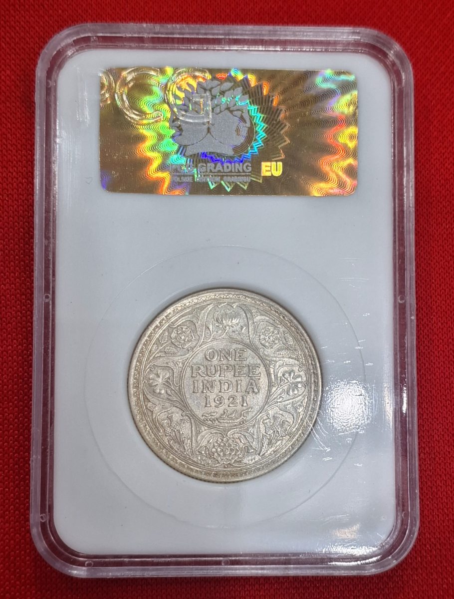 RARE MS 62 ONE RUPEE 1921 GEORGE V KING EMPEROR COIN PCG GRADED