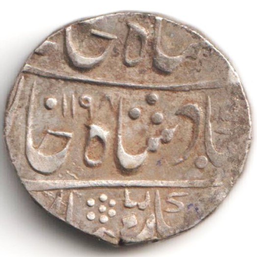 Obv: Sikka Mubarak, Shah Alam Badshah Ghazi
