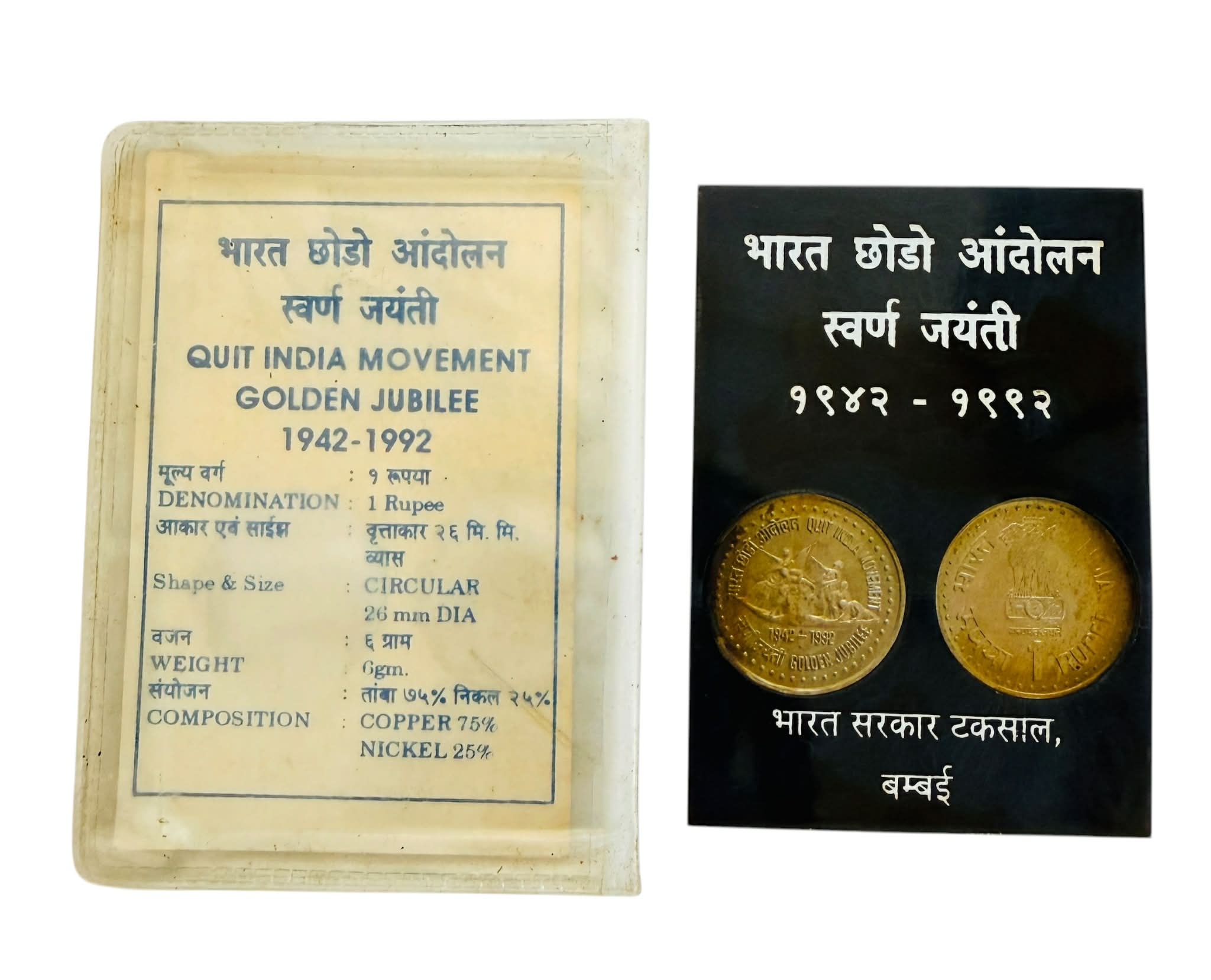 Re 1 Quit India Movement 1942 to 1992 Inauguration Set India Government Bombay Unlisted Ultra Unique and Rare