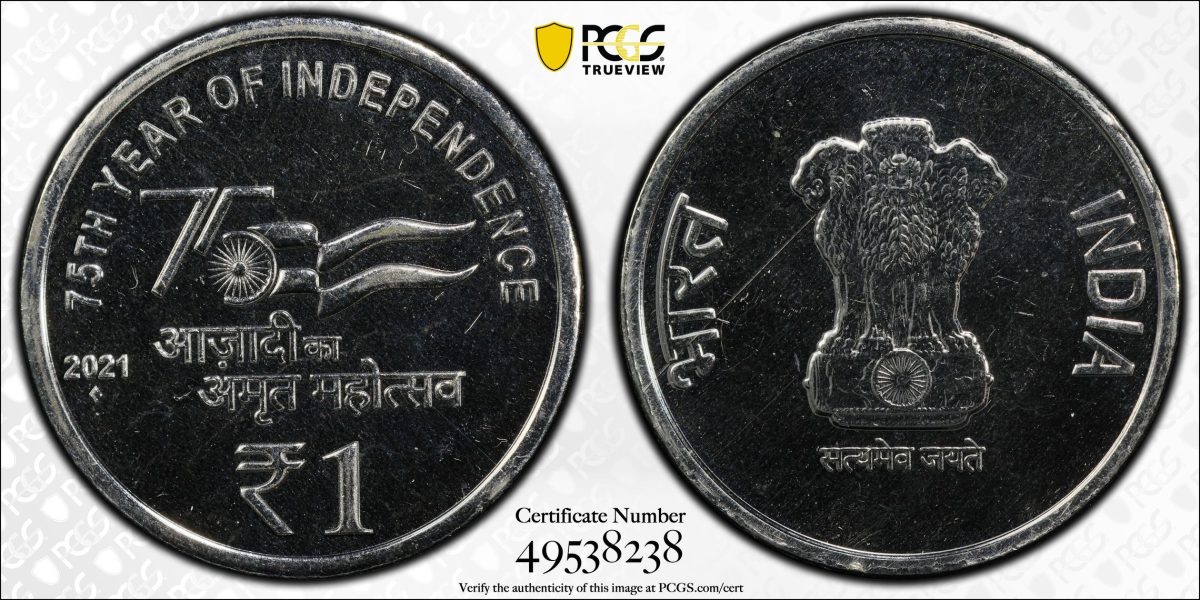 Re 1 Republic India Top Graded Pattern Coin 2021 Mumbai Mint Issue Graded 64 Extreme Unique and Rare