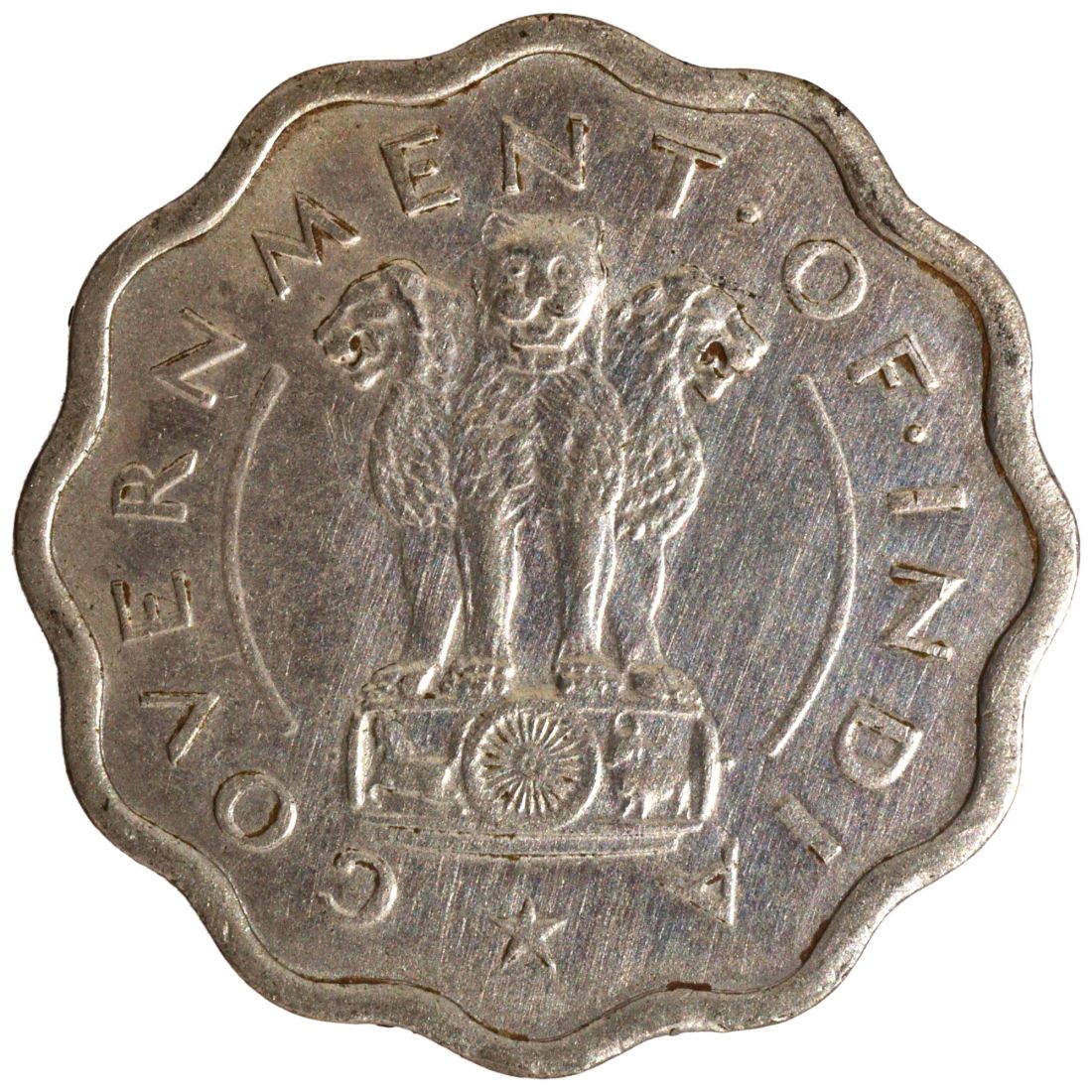 - Republic India, 1954, Copper-Nickel 1 Anna, Bombay Mint, Bull Series, 3.73g,