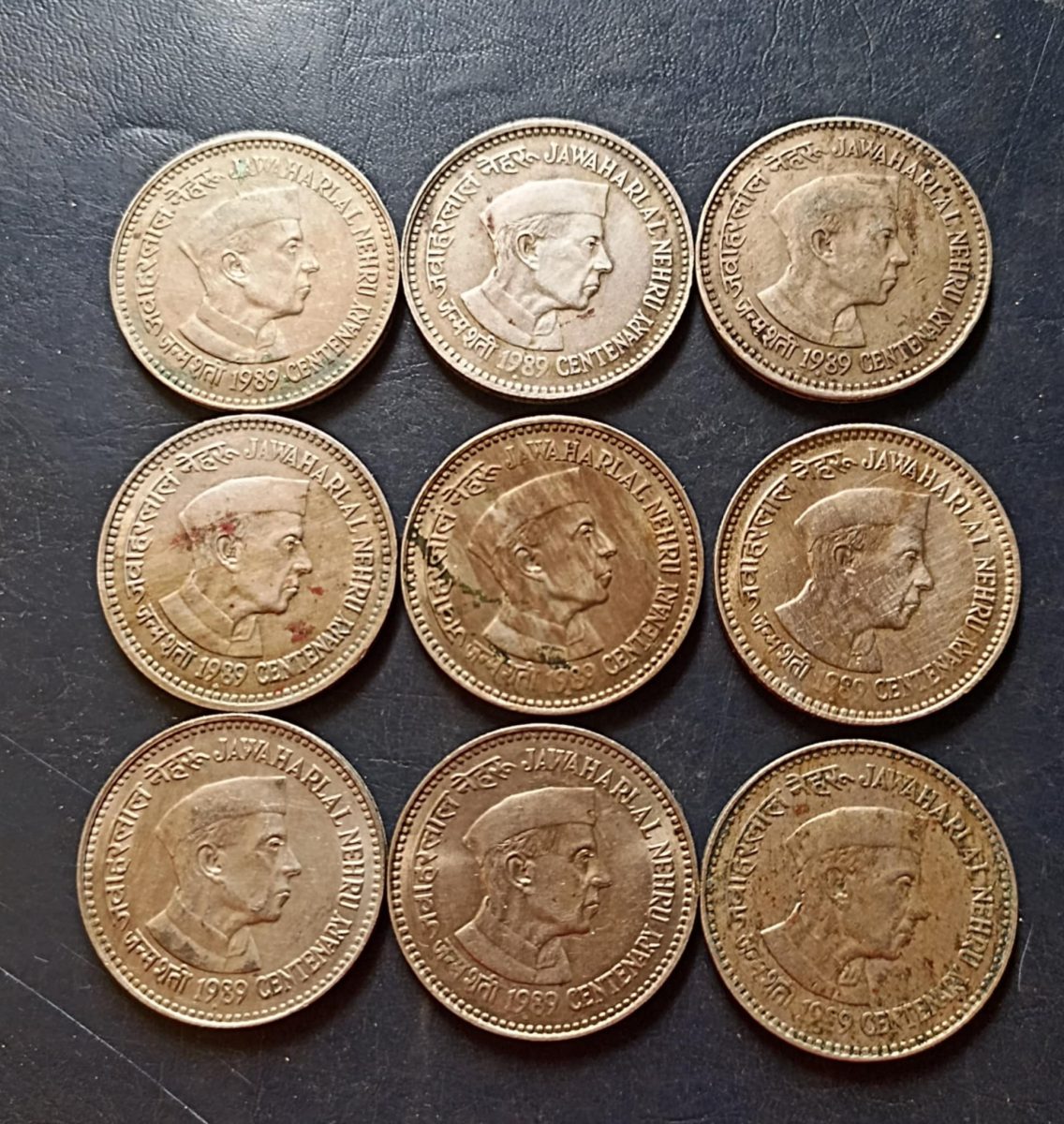 Republic India Denominaton 5₹ Metal coper nickel First prime minister of India 9 piece given Same and similar piece available