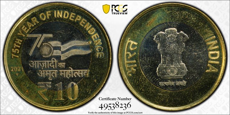 Rs 10 Republic India Top Graded Pattern Coin 2021 Mumbai Mint Azadi Ka Amrit Mohotsav Issue Graded Extreme Unique and Rare