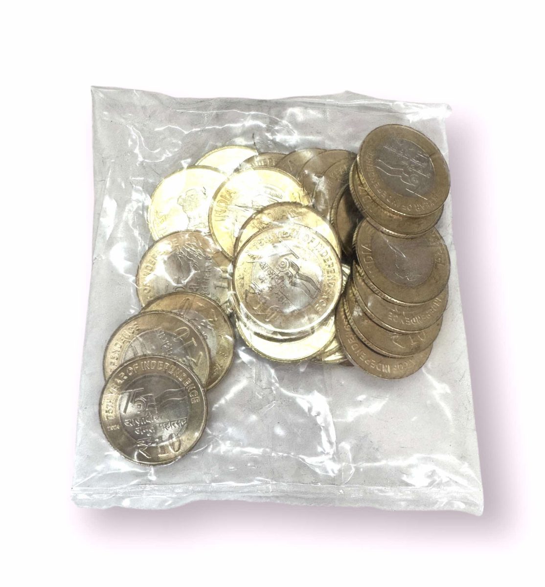 Rs 10 Rupee New Coin RBI Small Coin 75 Year Of Independence 25 Coin Packet India Issue 2024 Kolkata Mint AKAM Issue
