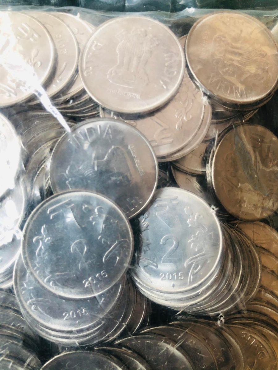 Rs 2 RBI Seal 100 Coin Pouch 2015 Mumbai Mint Top Luster Diamond Mark Definitive Issue