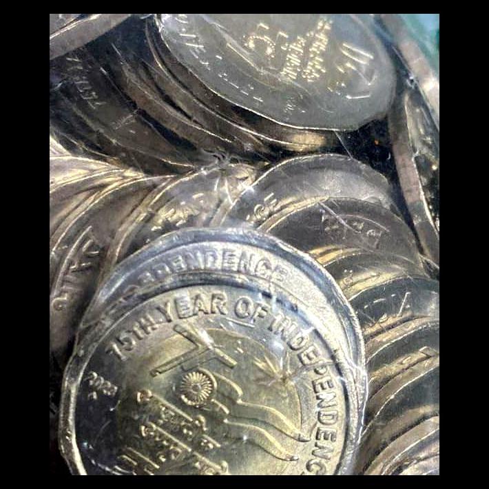 ObverseAshoka Pillar Lion Capitol Lettering: Translation: Truth alone triumphs ReverseThe face of the coin shall bear denominational value in the international numerals. The Rupee symbol is shown above the denominational value. The design is a celebration of 75th Year of Independence. Lettering: EdgeSmooth |