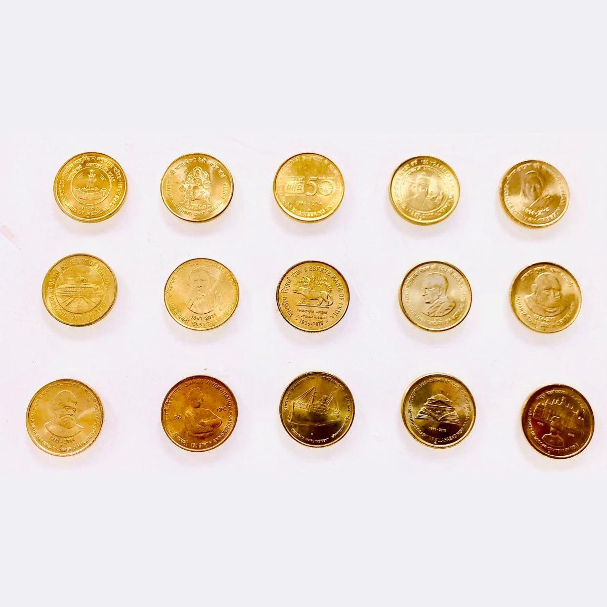 Rs 5 Government Of India Issue Superb Quality Unique 15 Coin Set Commemorative Issues Nickel Brass