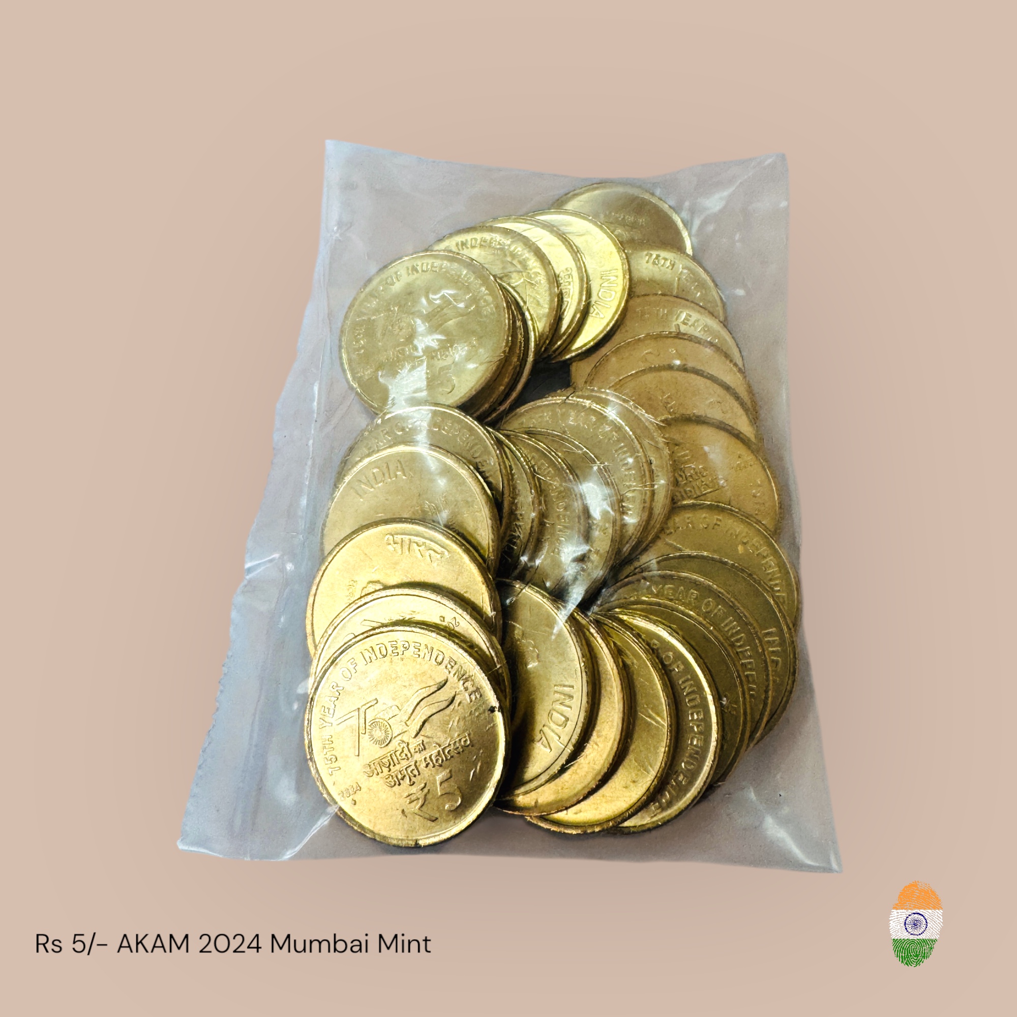 - Rs 5 New Coin 2021 of 75 Year Of Independence Azadi Ka Amrit Mahotsav of Mumbai Mint Rare AKAM Series